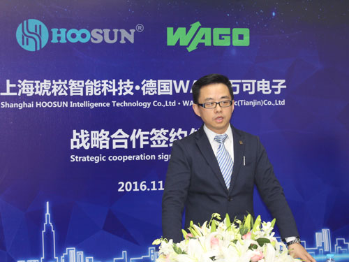 簽約儀式上,上海琥崧智能科技股份有限公司董事長李源林表示,制造業(yè)與互聯(lián)網(wǎng)融合發(fā)展,是全球新一輪科技革命和產(chǎn)業(yè)革命的核心特征,也是未來發(fā)展趨勢。不斷創(chuàng)新一直是琥崧堅持的戰(zhàn)略與目標(biāo),2016年琥崧智能布局全球精細(xì)化工市場,選擇與德國WAGO這樣優(yōu)秀的企業(yè)合作,將引進(jìn)WAGO全球化的智能制造網(wǎng)絡(luò)技術(shù),為精細(xì)化工企業(yè)提升工廠自動化水平、產(chǎn)品質(zhì)量水平及生產(chǎn)監(jiān)控物聯(lián)網(wǎng)水平,以最新科技為精細(xì)化工企業(yè)筑就通向柔性、靈活的“未來工廠”之路,助力實(shí)現(xiàn)“中國制造2025”規(guī)劃目標(biāo)。