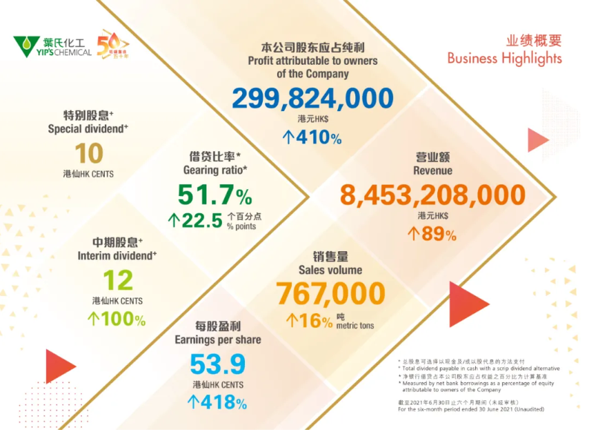 葉氏化工公布2021中期業績