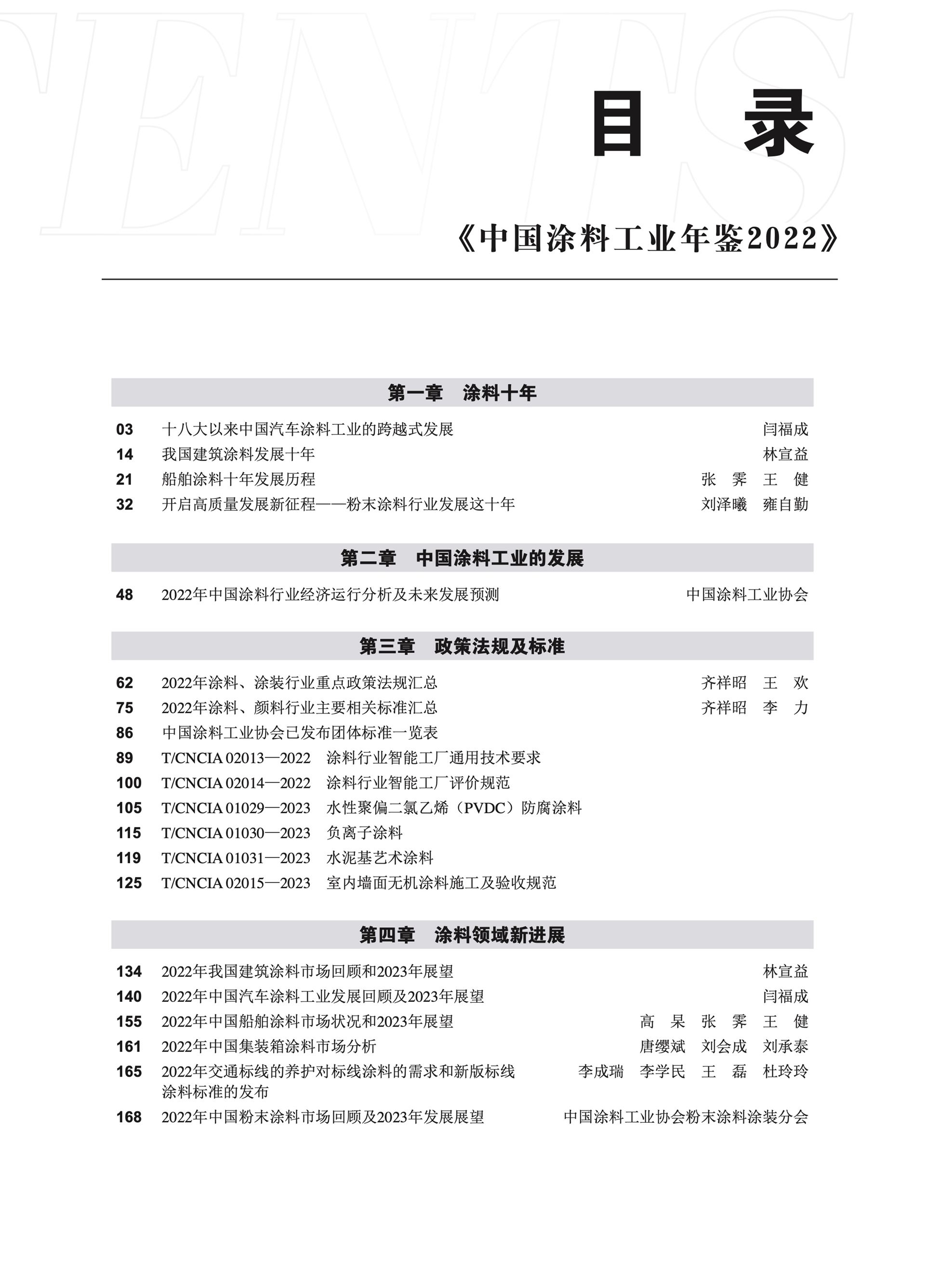 《中國(guó)涂料工業(yè)年鑒》是由中國(guó)涂料工業(yè)協(xié)會(huì)組織編撰的一本唯一逐年輯錄中國(guó)涂料工業(yè)發(fā)展的權(quán)威性文獻(xiàn),是展示我國(guó)涂料工業(yè)現(xiàn)狀與發(fā)展的史實(shí)性工具書(shū)。自1989年開(kāi)始記載行業(yè)發(fā)展以來(lái),已連續(xù)30余年受到涂料上下游產(chǎn)業(yè)鏈的高度關(guān)注。