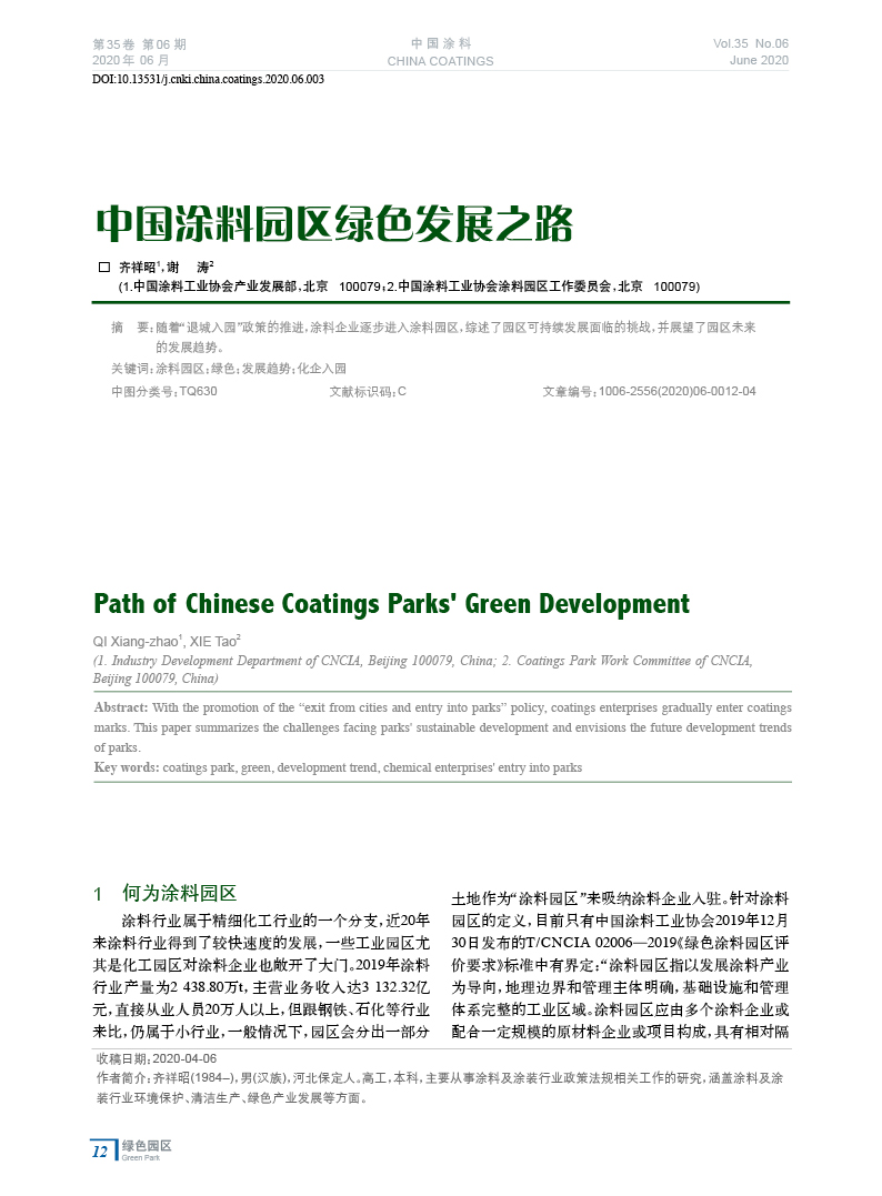本文系作者@齊祥昭,謝 濤 授權中國涂料網發表,并經中國涂料網編輯,未經允許不得轉載,如需轉載請聯系chinacoatingnet@vip.163.com
