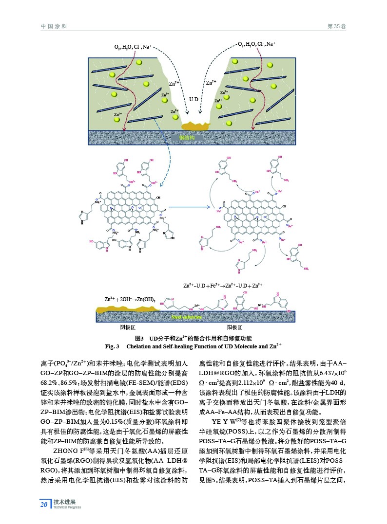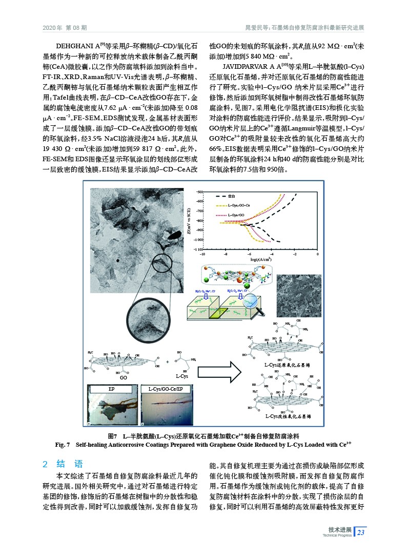綜述了石墨烯自修復防腐涂料最近幾年的研究進展。通過對石墨烯特定基團進行修飾,修飾后的石墨烯在樹脂中的分散性和穩定性得到改善,同時可以加載緩蝕劑,發揮自修復功能,很好地延長涂層的使用壽命。