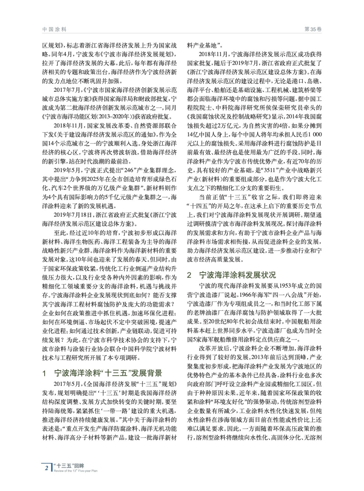 介紹了寧波市海洋經濟發展歷程,調查了寧波海洋涂料發展歷史和現狀,重點總結回顧“十三五”期間寧波海洋涂料的優劣得失,并對“十四五”期間寧波本地海洋涂料發展前景作了展望。