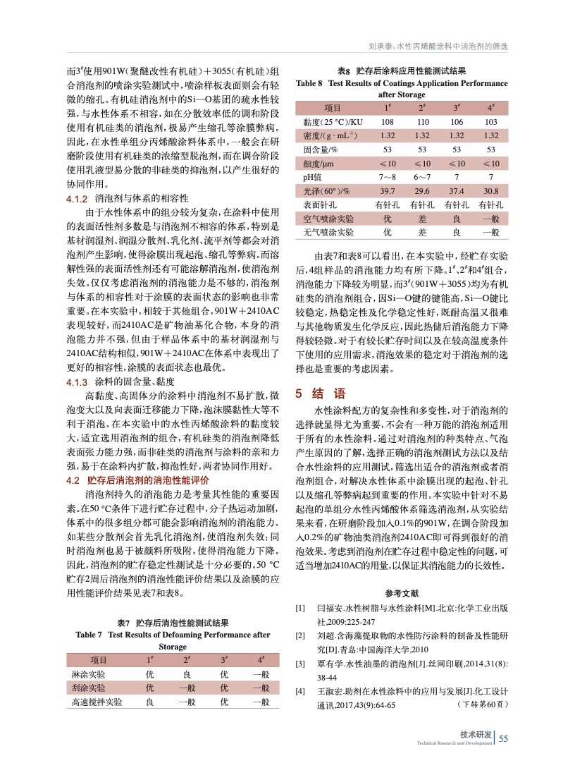 對水性涂料中氣泡的產生及穩定進行了闡述,同時介紹了消泡劑的種類及特點。通過溶解性實驗、高速攪拌實驗以及應用實驗,評價了4組不同種類的消泡劑組合在單組分水性丙烯酸面漆中的消泡性能,并討論了影響水性涂料泡沫的因素。