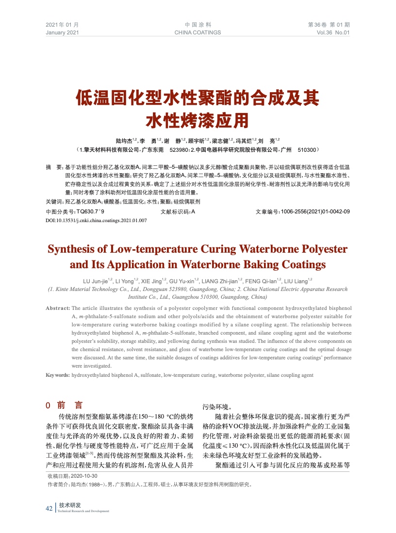 本文系作者@陸均杰,李 勇,謝 靜,顧宇昕,梁志健,馮其爛,劉 亮 授權中國涂料網發表,并經中國涂料網編輯,未經允許不得轉載,如需轉載請聯系chinacoatingnet@vip.163.com