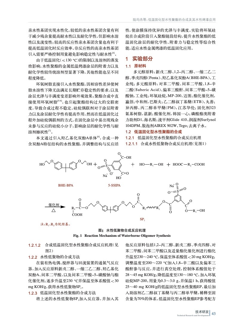 低溫固化型水性聚酯的合成及其水性烤漆應用