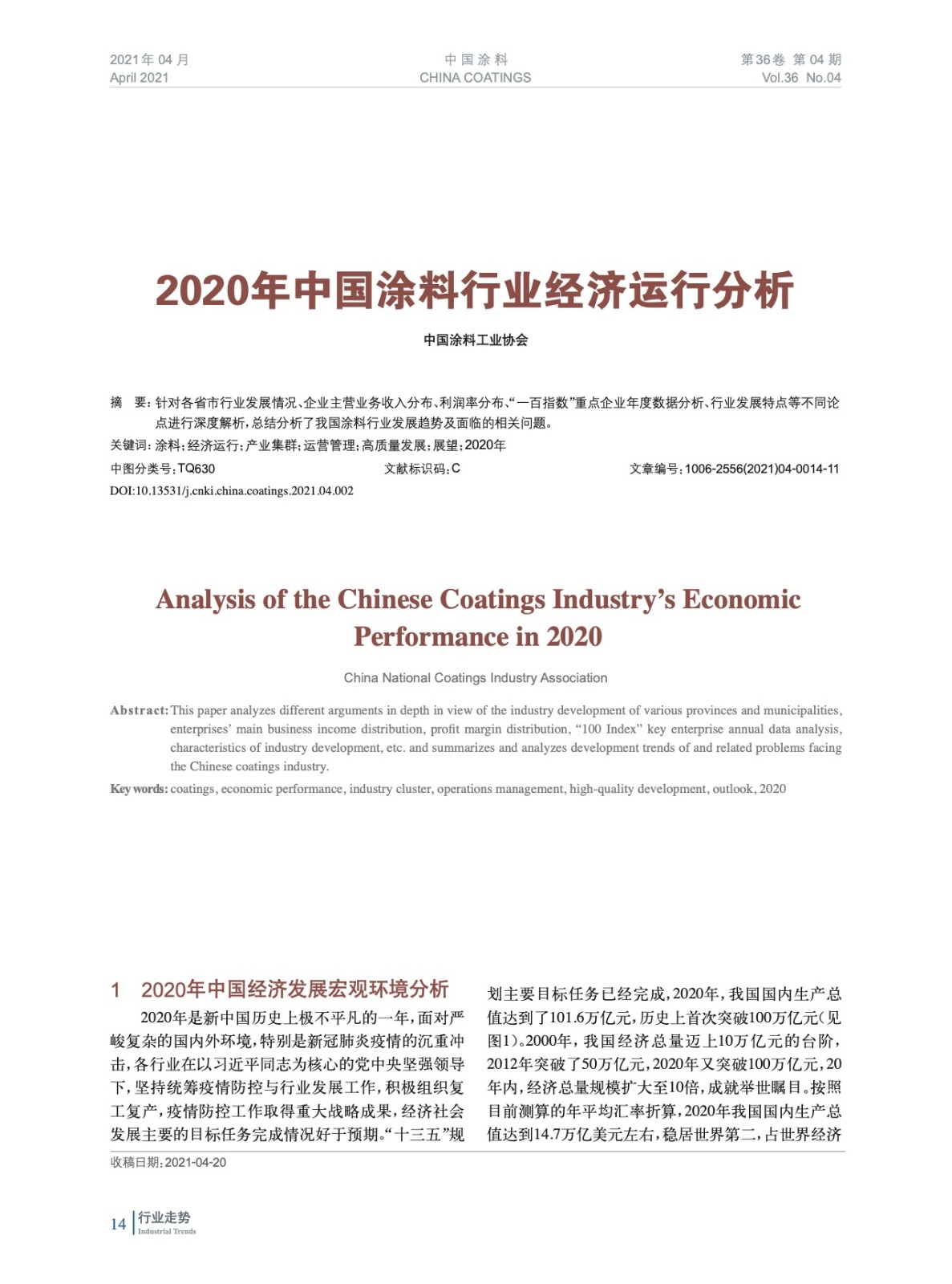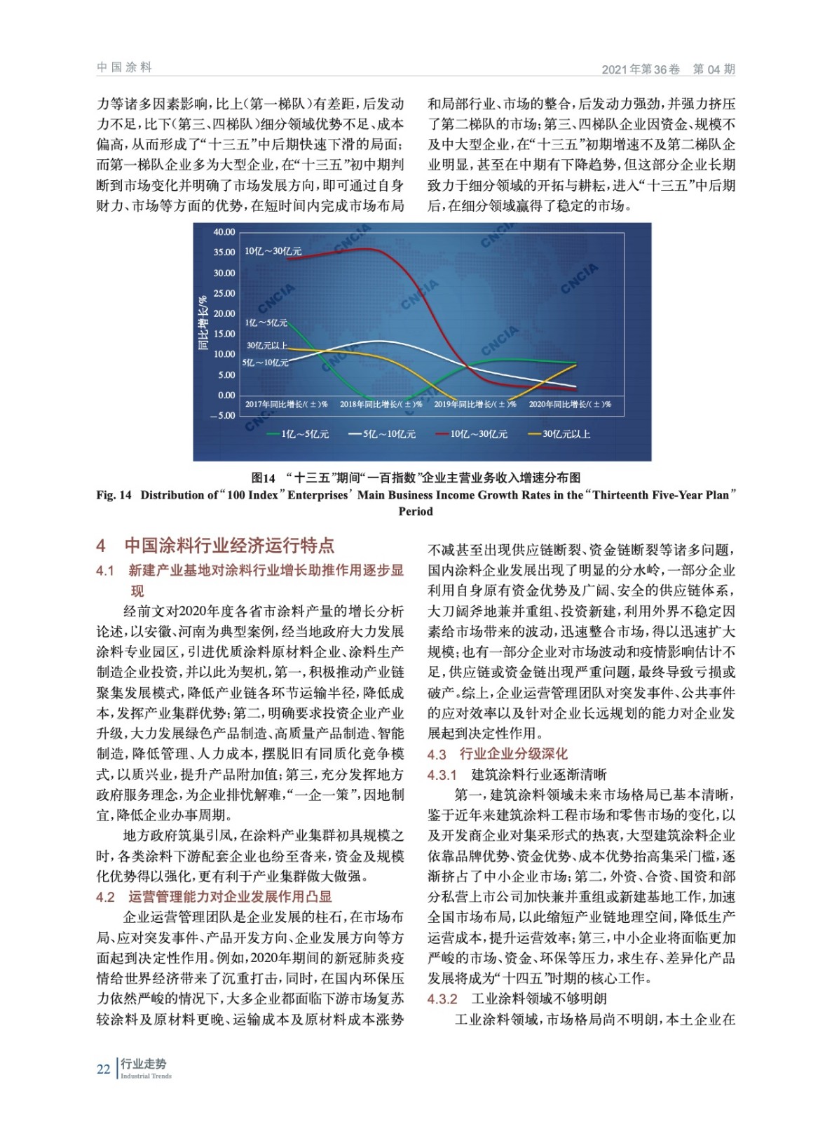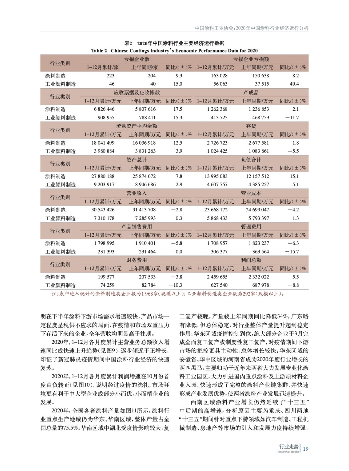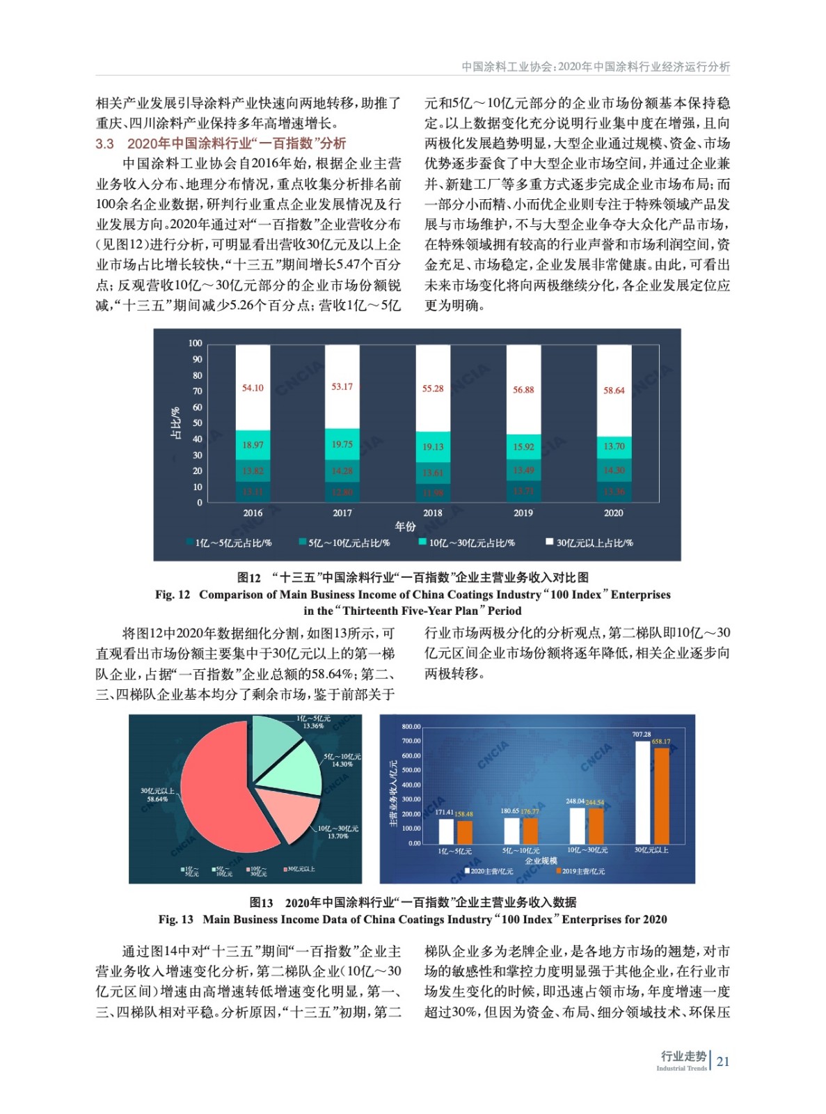 針對各省市行業發展情況、企業主營業務收入分布、利潤率分布、“一百指數”重點企業年度數據分析、行業發展特點等不同論點進行深度解析,總結分析了我國涂料行業發展趨勢及面臨的相關問題。