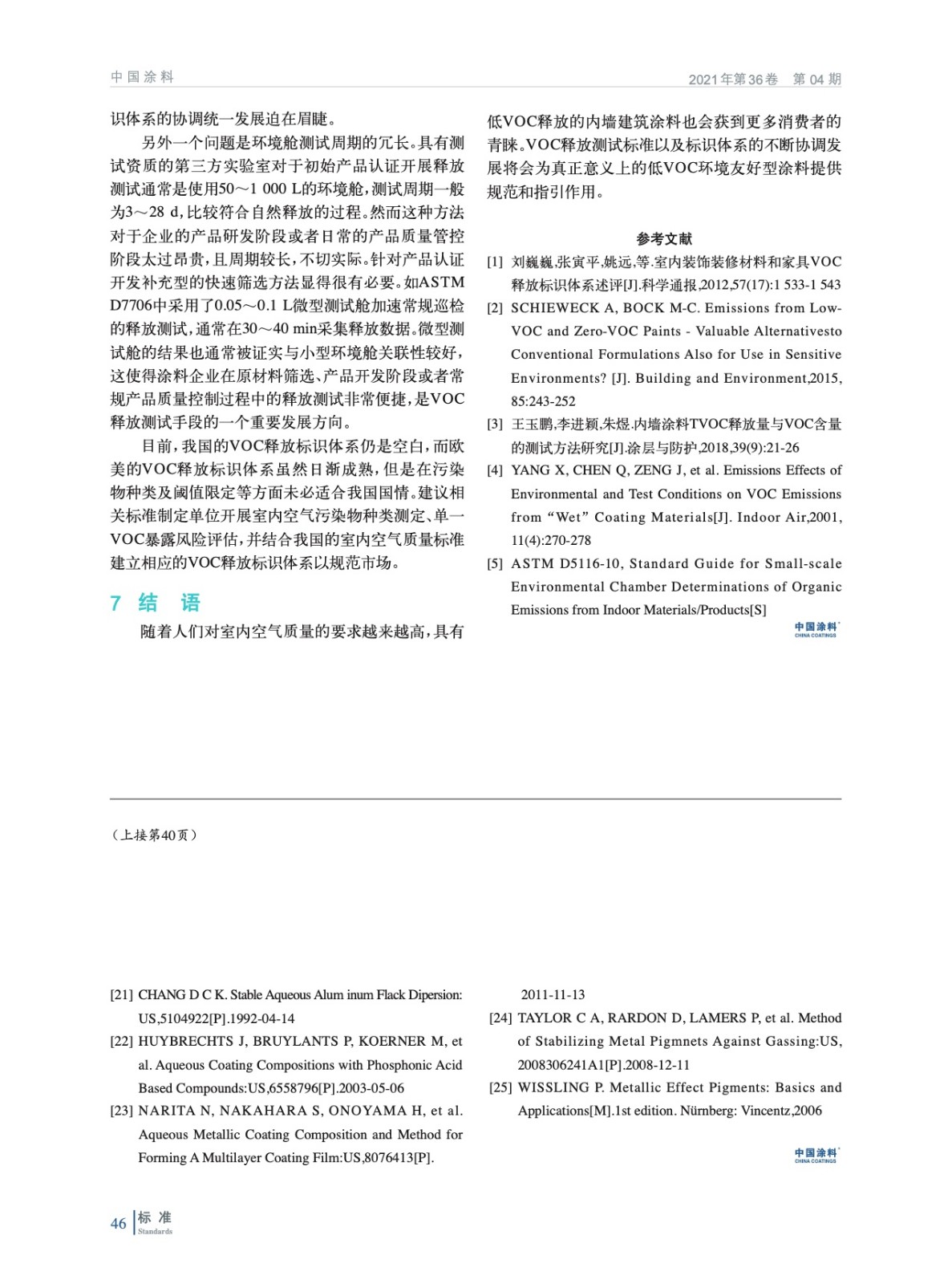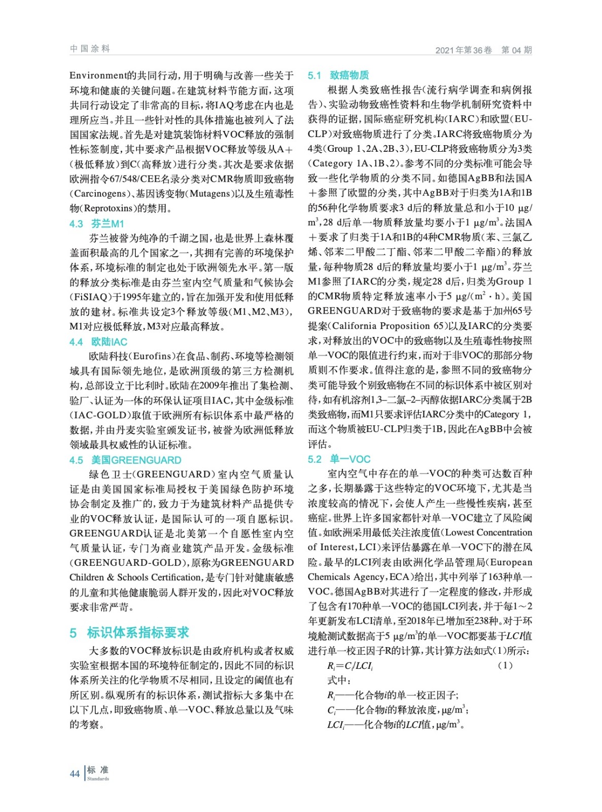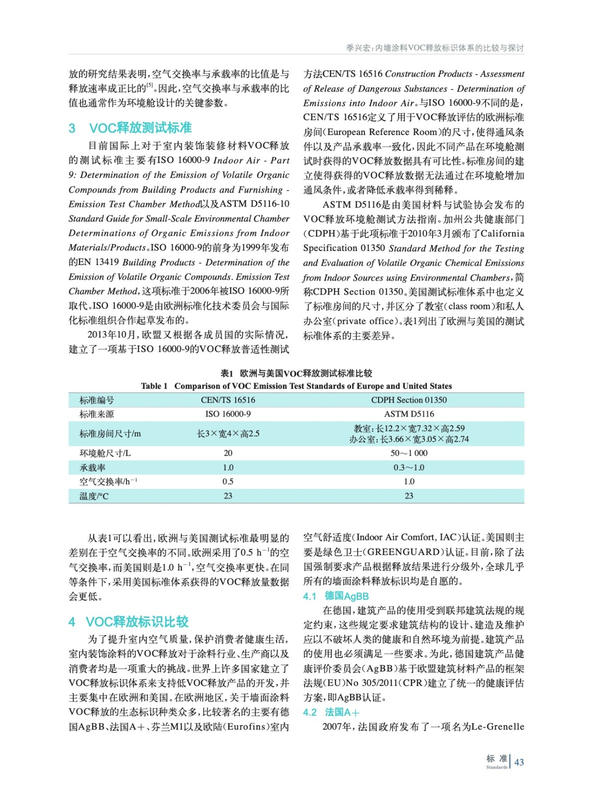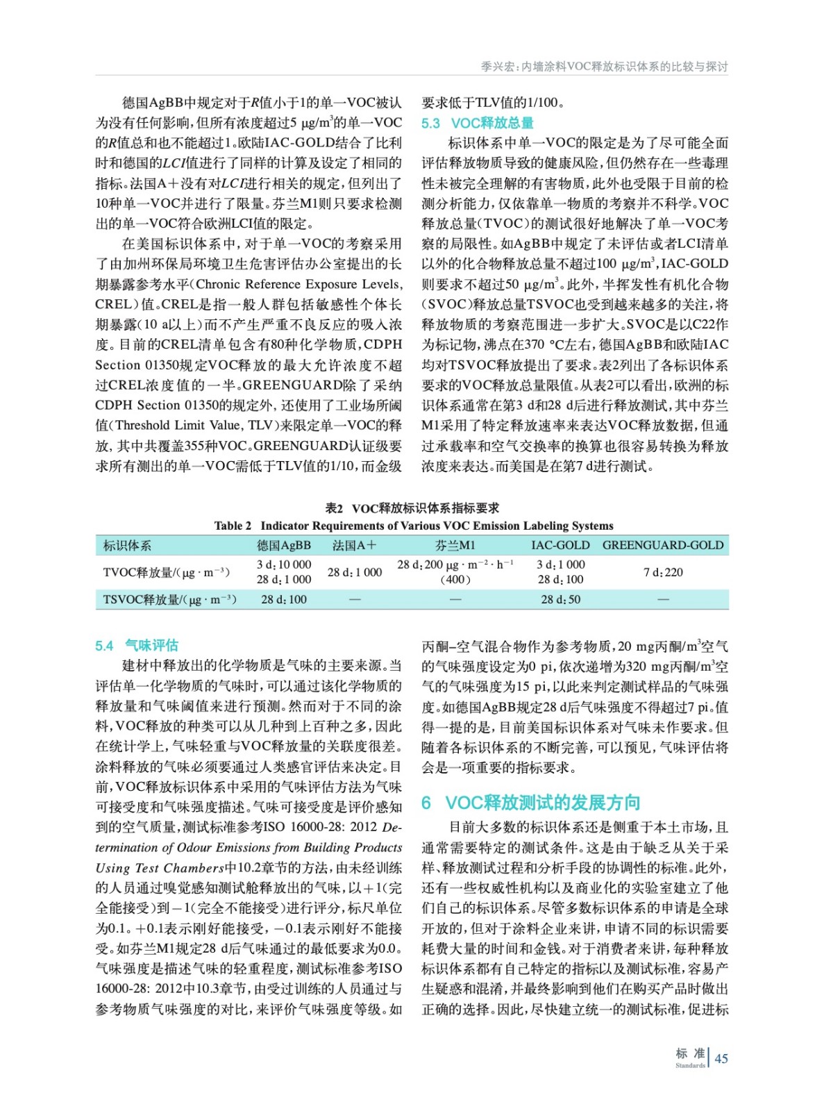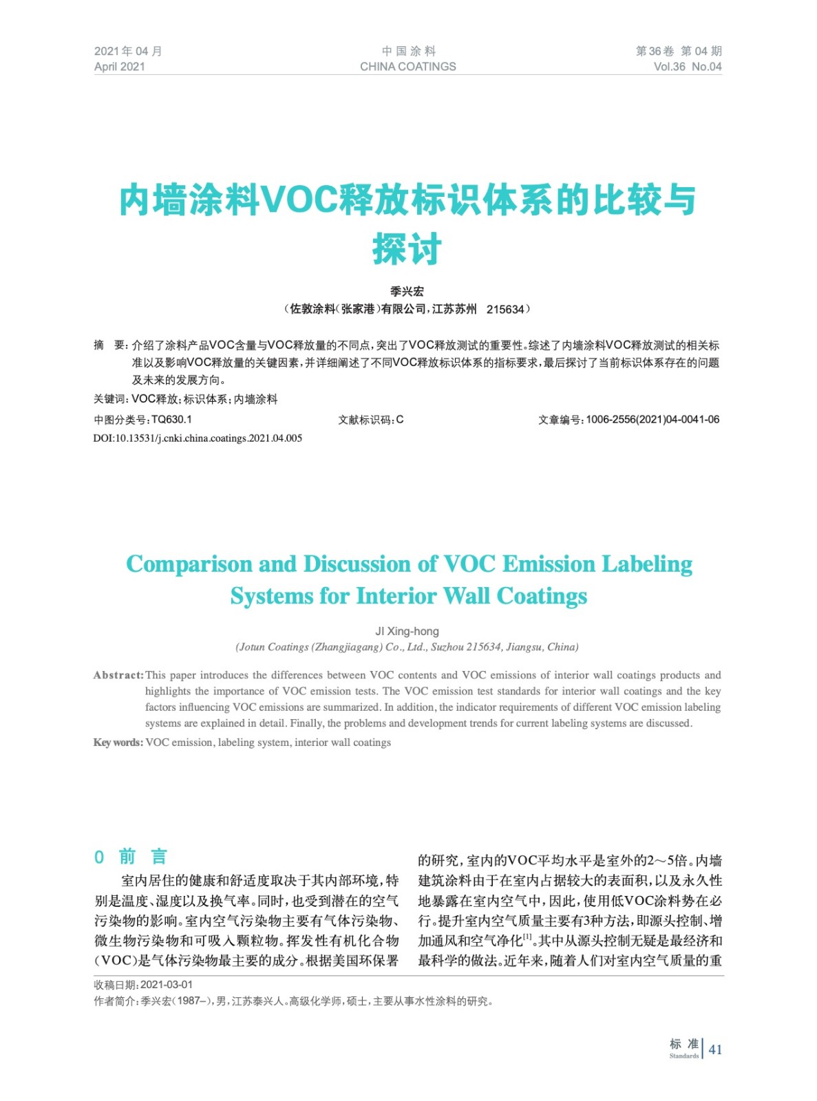 介紹了涂料產品VOC含量與VOC釋放量的不同點,突出了VOC釋放測試的重要性。綜述了內墻涂料VOC釋放測試的相關標準以及影響VOC釋放量的關鍵因素,并詳細闡述了不同VOC釋放標識體系的指標要求,最后探討了當前標識體系存在的問題及未來的發展方向。