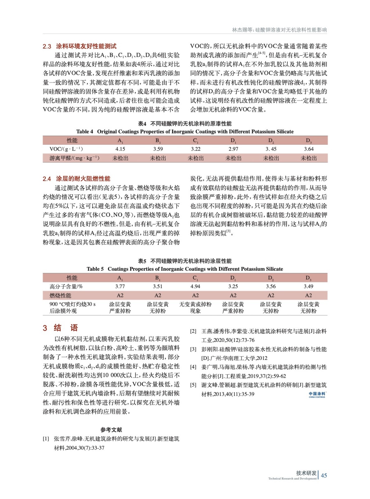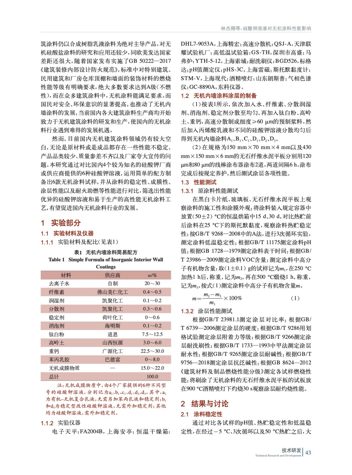 硅酸鉀溶液對無機(jī)涂料性能影響
