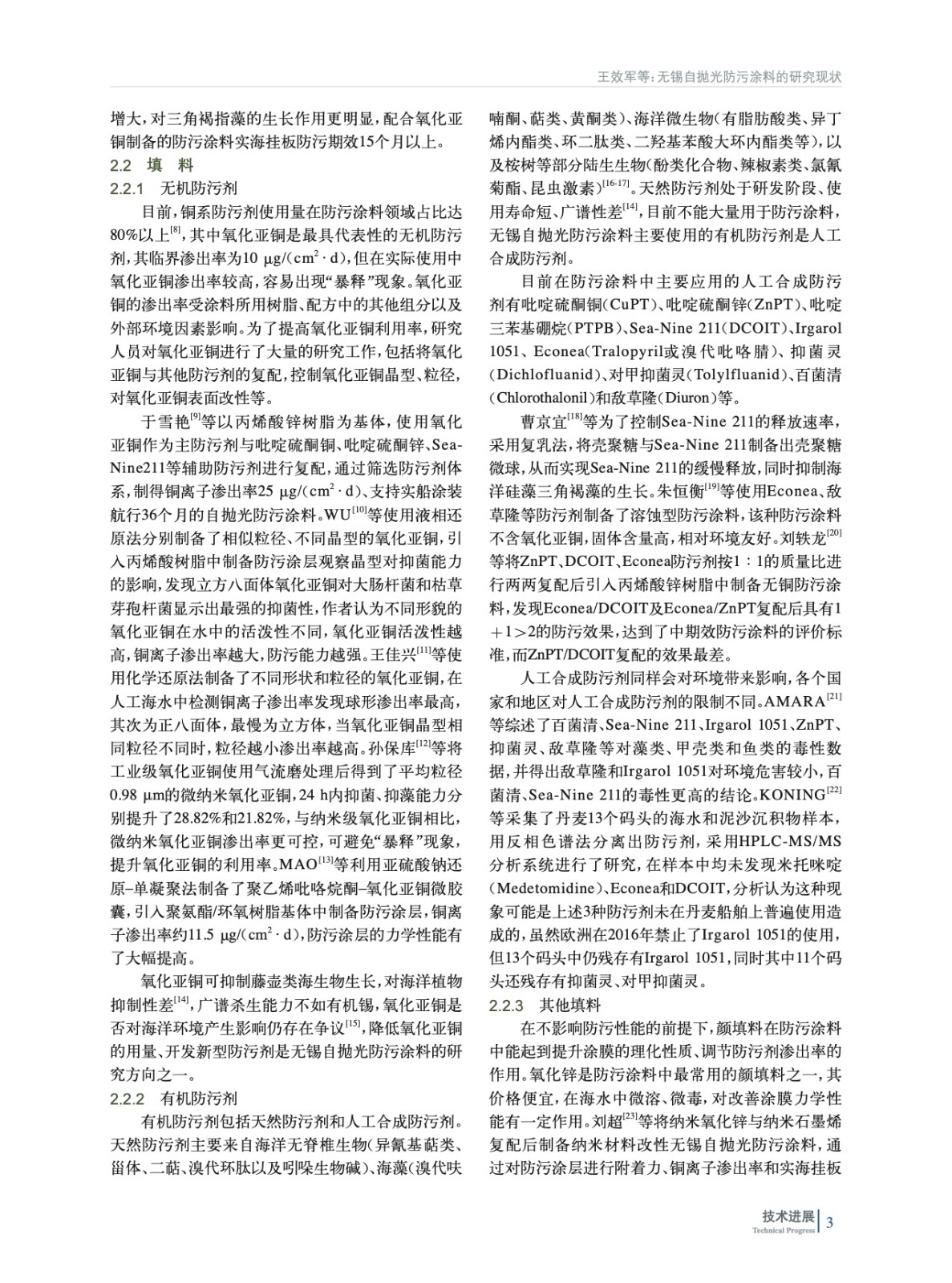 涂裝防污涂料是涉海裝備規避海洋生物污損的有效手段。目前,防污涂料市場主流產品為無錫自拋光防污涂料(TFSPC),就無錫自拋光防污涂料的原理及其主要組分的研究應用現狀進行了論述。