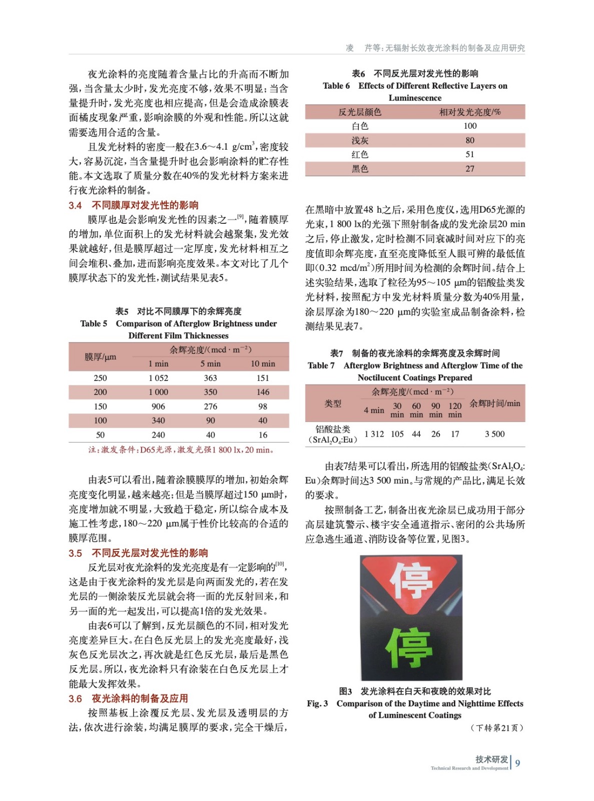 以羥基丙烯酸樹脂為成膜物質,用鋁酸鹽類發光材料為主要顏料制備了一種無輻射長效型夜光涂料,通過對夜光發光材料種類、粒徑、添加量等因素進行研究,同時對涂裝應用時的反光層及膜厚等應用探索,確定了最終涂裝效果。