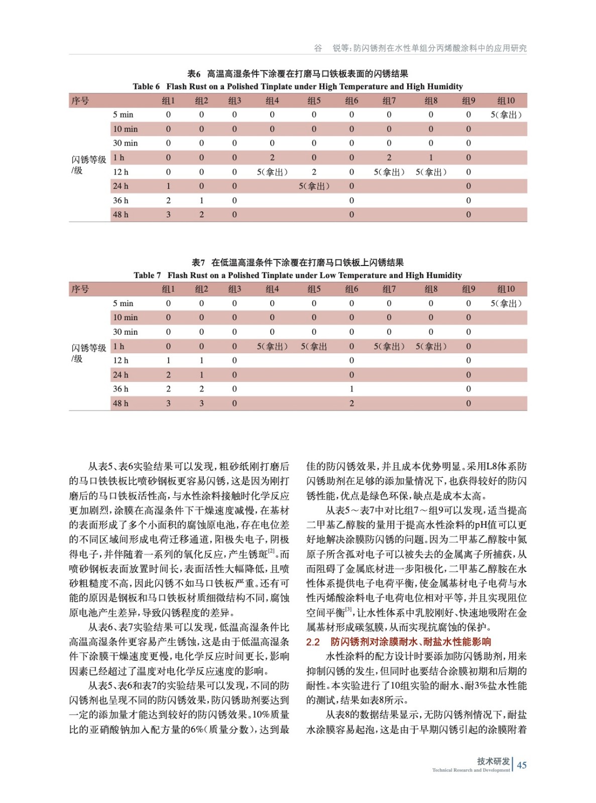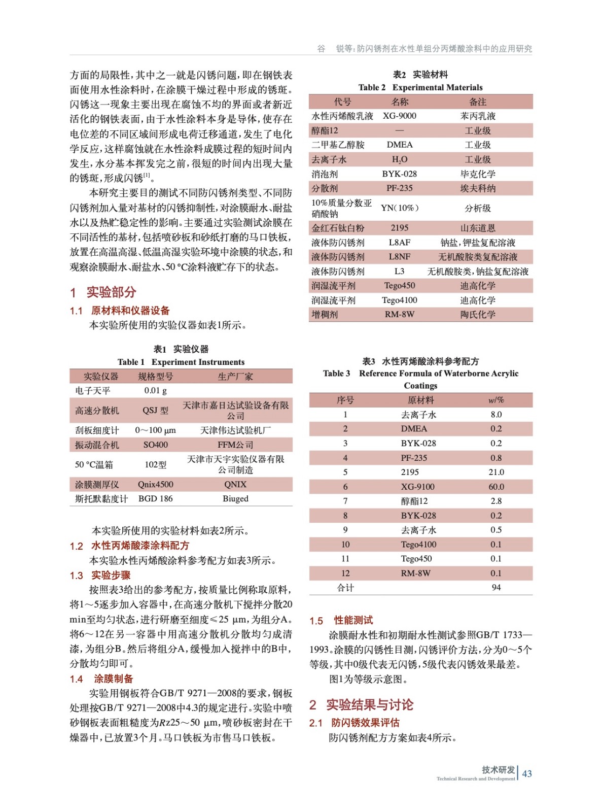 防閃銹劑在水性單組分丙烯酸涂料中的應用研究