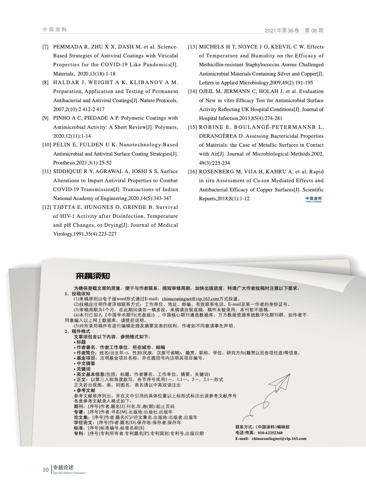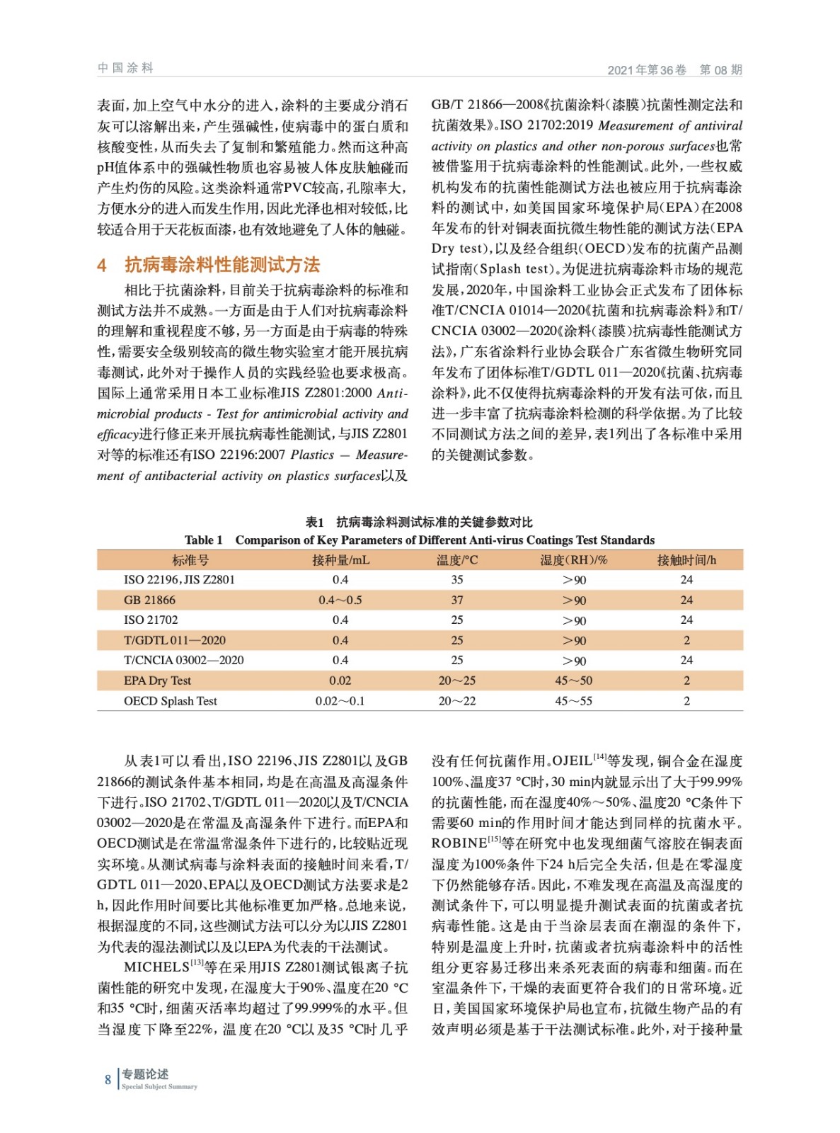 摘要:從病毒與細(xì)菌的結(jié)構(gòu)差異出發(fā),揭示了抗病毒涂料與抗菌涂料不同的作用機(jī)理,并綜述了當(dāng)前抗病毒涂料的應(yīng)用技術(shù)。最后討論了抗病毒涂料的性能測(cè)試方法及指標(biāo)要求。