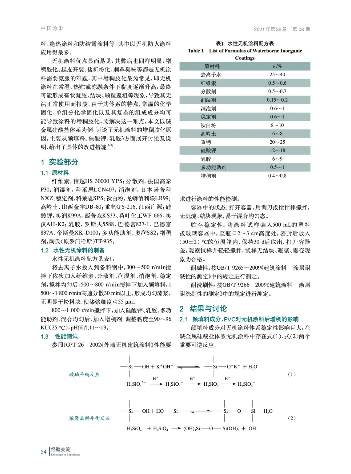 以硅酸鉀體系無機涂料為例,分析水性無機建筑涂料增稠膠化原因,主要從顏填料、硅酸鉀、乳膠等方面進行分析,通過實驗驗證,得出如何選擇原料使體系穩定性最佳。