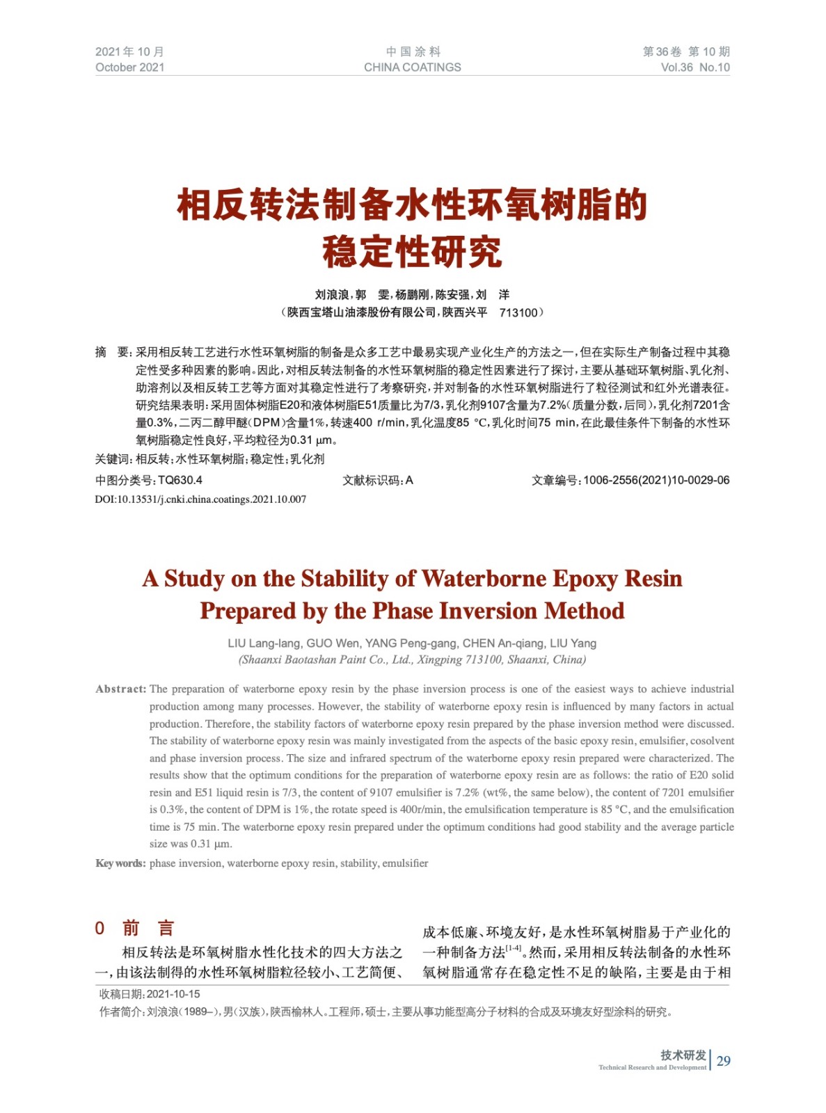 本文系作者@劉浪浪,郭 雯,楊鵬剛,陳安強,劉 洋 授權中國涂料網發表,并經中國涂料網編輯,未經允許不得轉載,如需轉載請聯系chinacoatingnet@vip.163.com