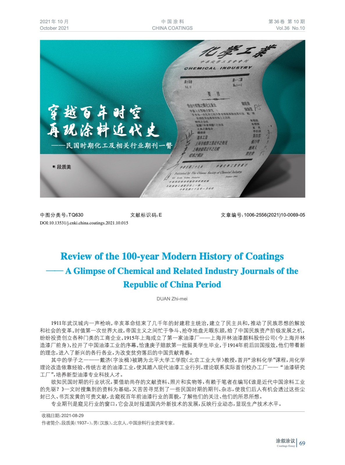 穿越百年時空 再現(xiàn)涂料近代史——民國時期化工及相關(guān)行業(yè)期刊一瞥