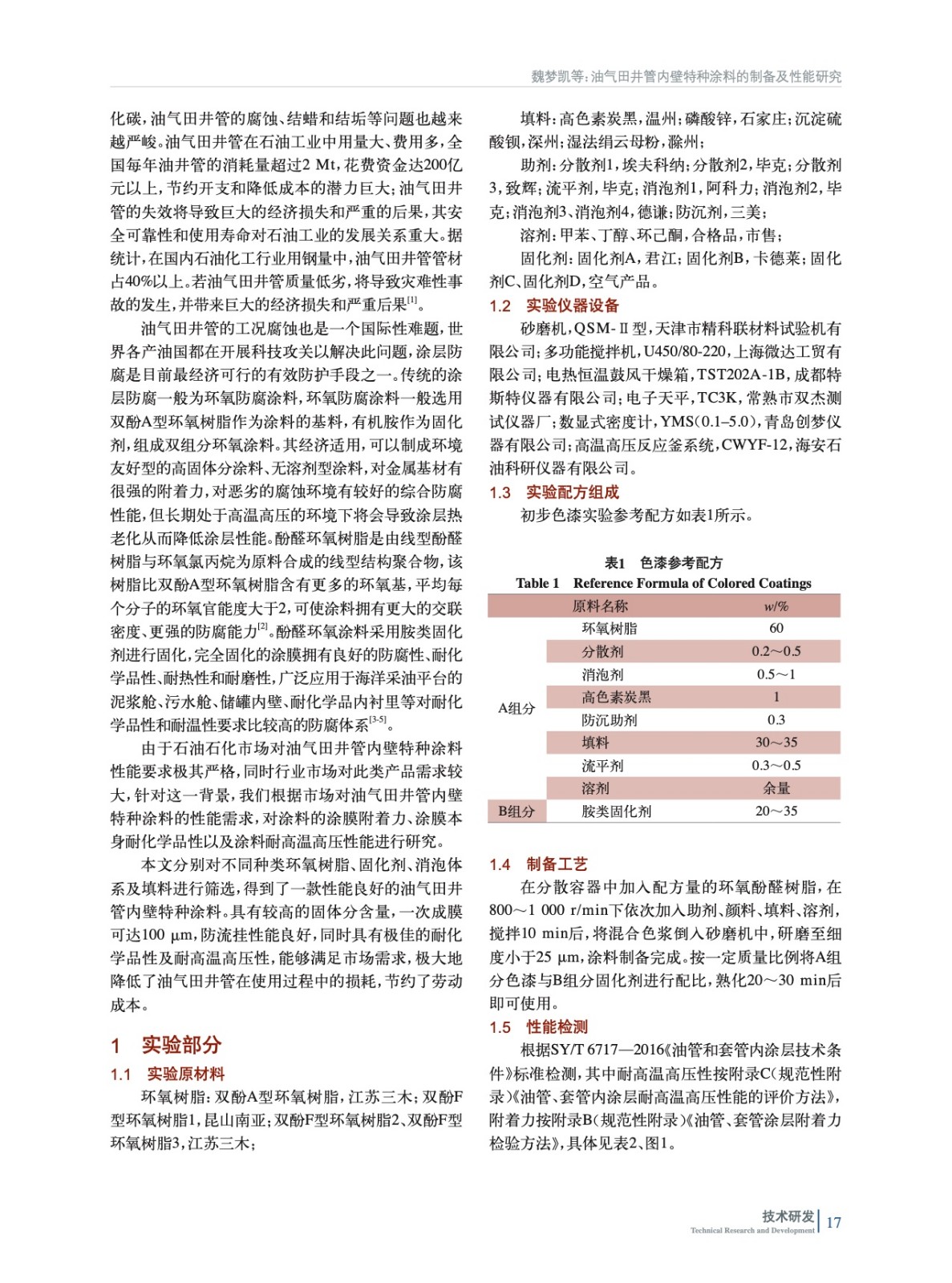 油氣田井管內(nèi)壁特種涂料的制備及性能研究