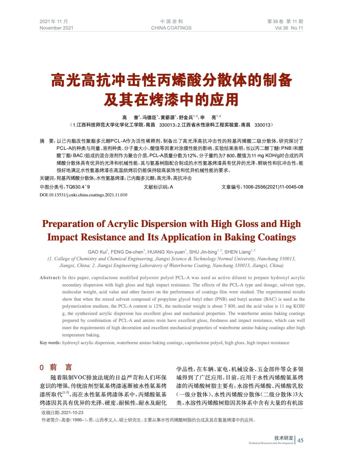 本文系作者@高 奎,馮德臣,黃薪源,舒金兵,申 亮 授權中國涂料網發表,并經中國涂料網編輯,未經允許不得轉載,如需轉載請聯系chinacoatingnet@vip.163.com