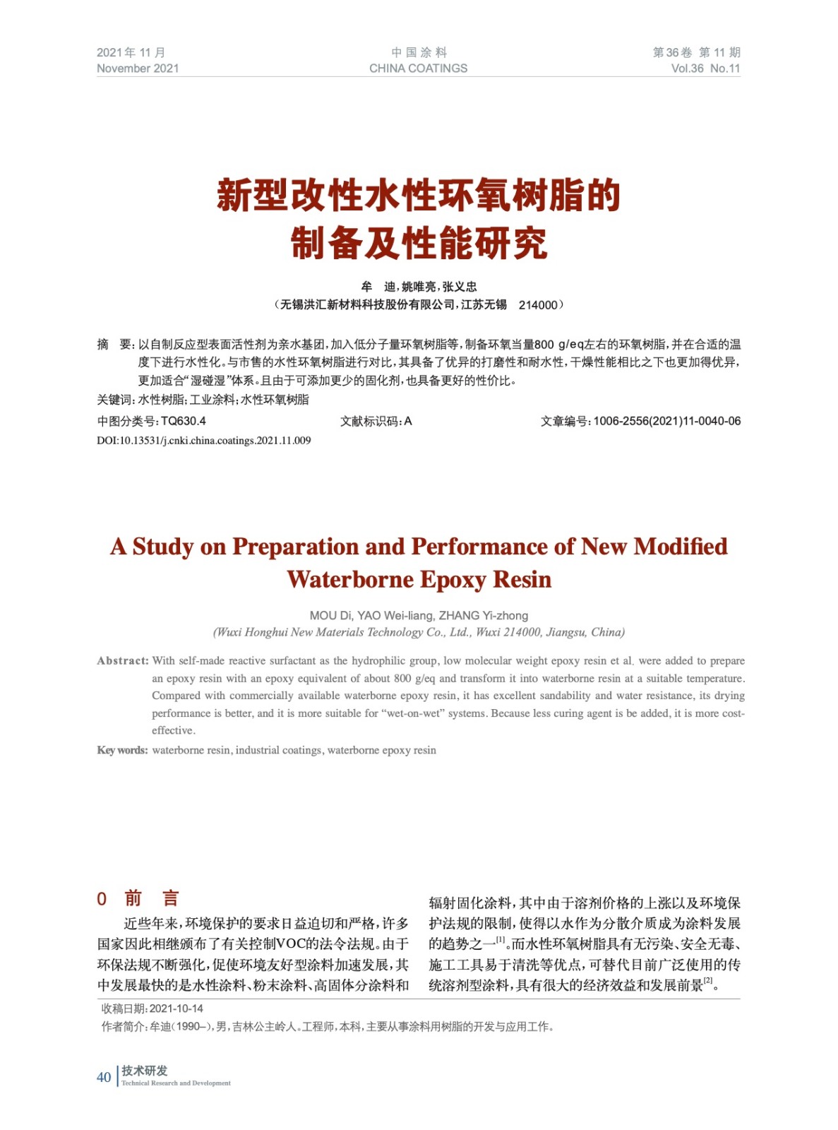 本文系作者@牟 迪,姚唯亮,張義忠 授權(quán)中國(guó)涂料網(wǎng)發(fā)表,并經(jīng)中國(guó)涂料網(wǎng)編輯,未經(jīng)允許不得轉(zhuǎn)載,如需轉(zhuǎn)載請(qǐng)聯(lián)系chinacoatingnet@vip.163.com