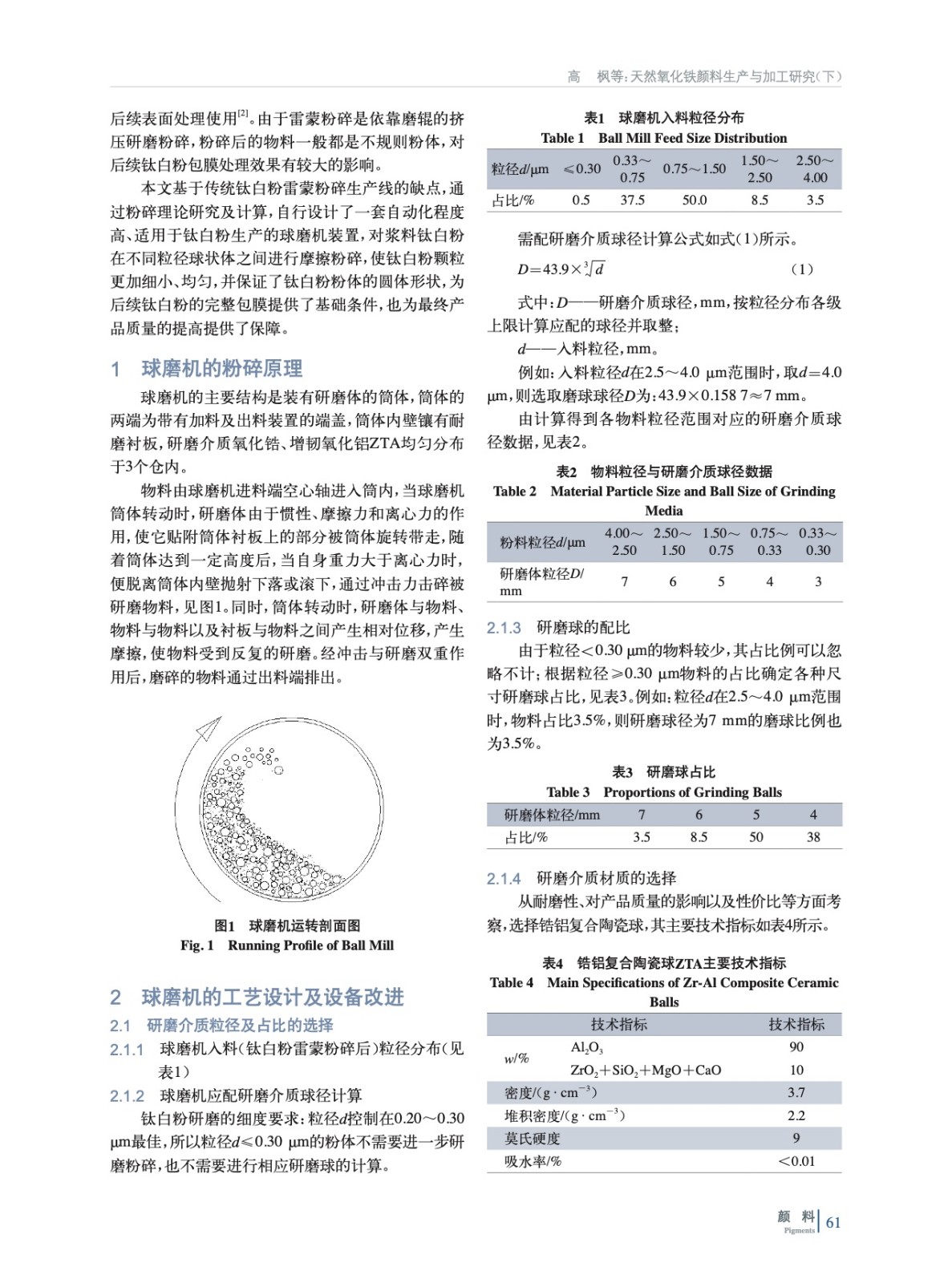 研究基于傳統鈦白粉雷蒙粉碎生產線的缺點,通過粉碎理論研究及計算,設計了一套鈦白粉生產線應用球磨機裝置,經實驗證實,可有效改善粉碎后物料球形狀態,優化包膜效果,提高鈦白粉顏色質量及堆密度,可有效提高下游客戶的生產效率。