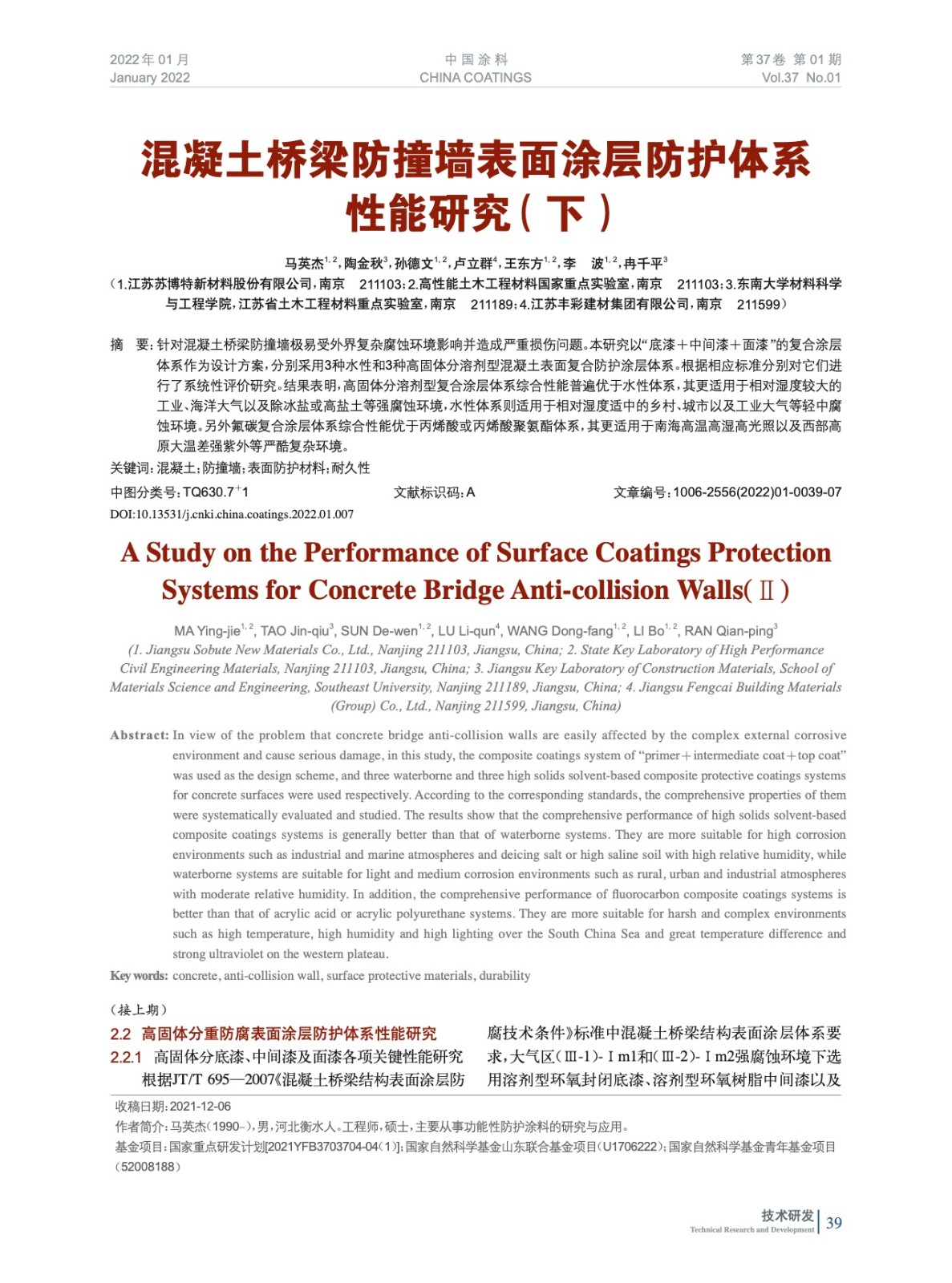 本文系作者@馬英杰,陶金秋,孫德文,盧立群,王東方,李 波,冉千平 授權(quán)中國涂料網(wǎng)發(fā)表,并經(jīng)中國涂料網(wǎng)編輯,未經(jīng)允許不得轉(zhuǎn)載,如需轉(zhuǎn)載請聯(lián)系chinacoatingnet@vip.163.com