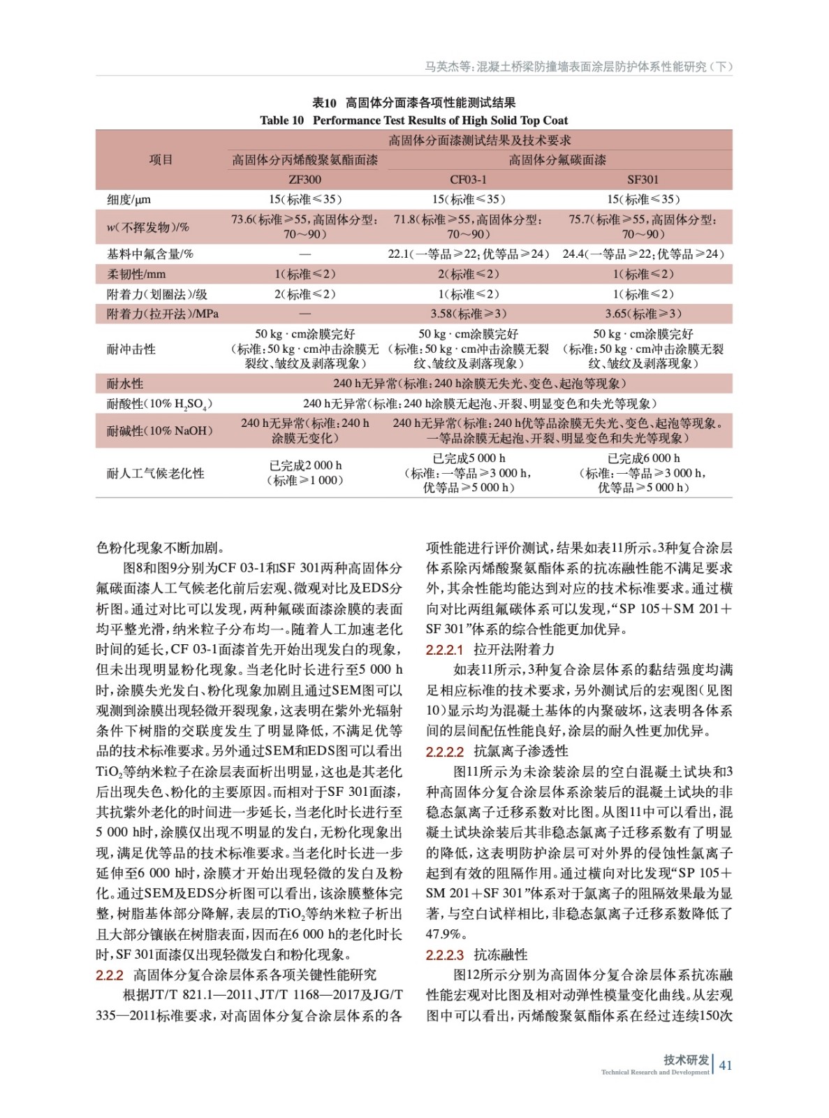 混凝土橋梁防撞墻表面涂層防護體系性能研究(下)