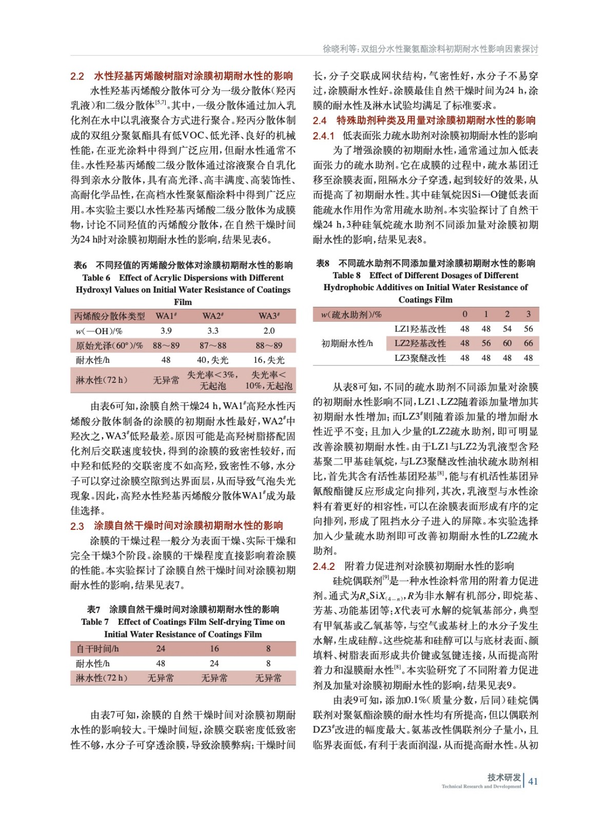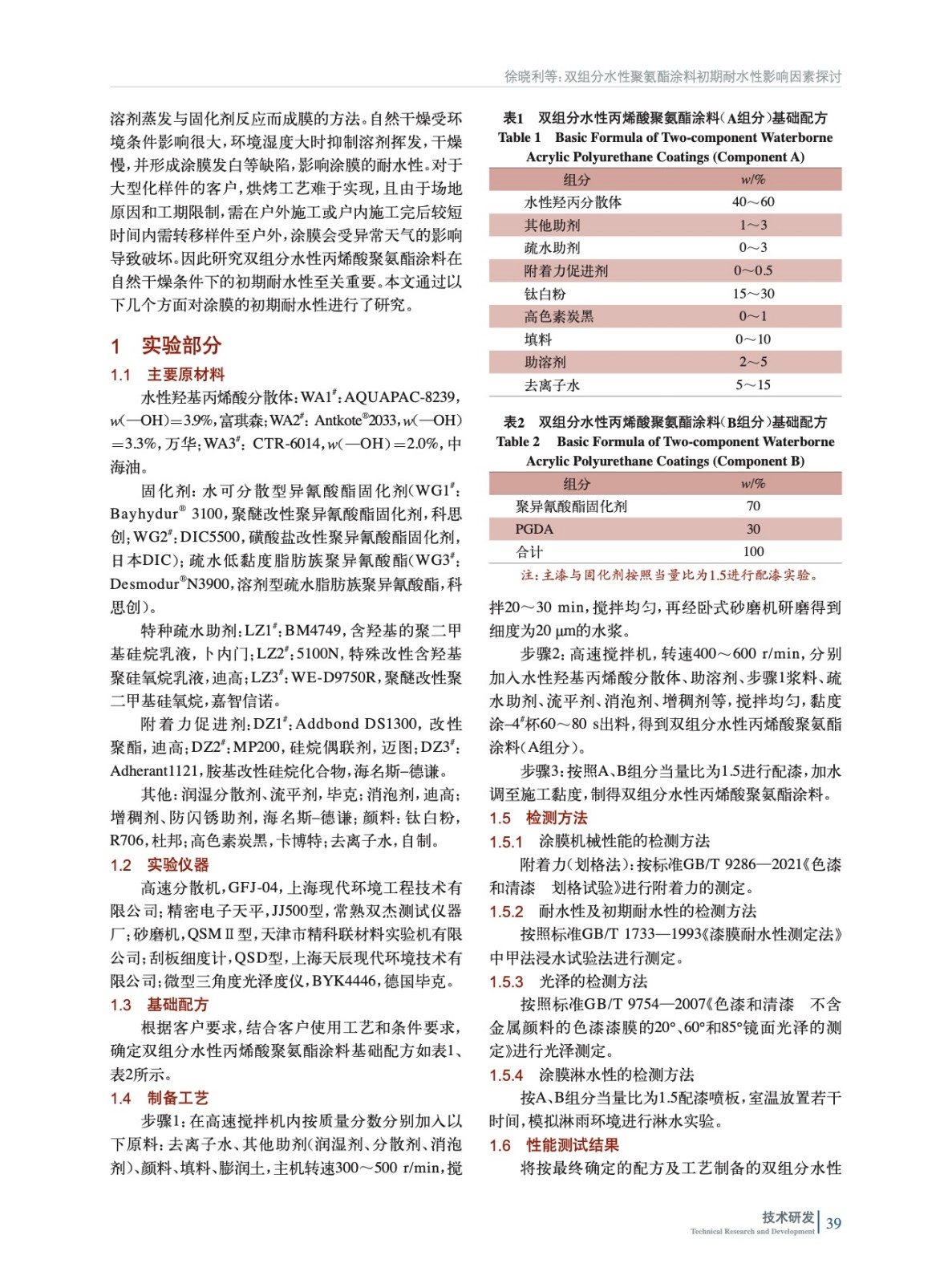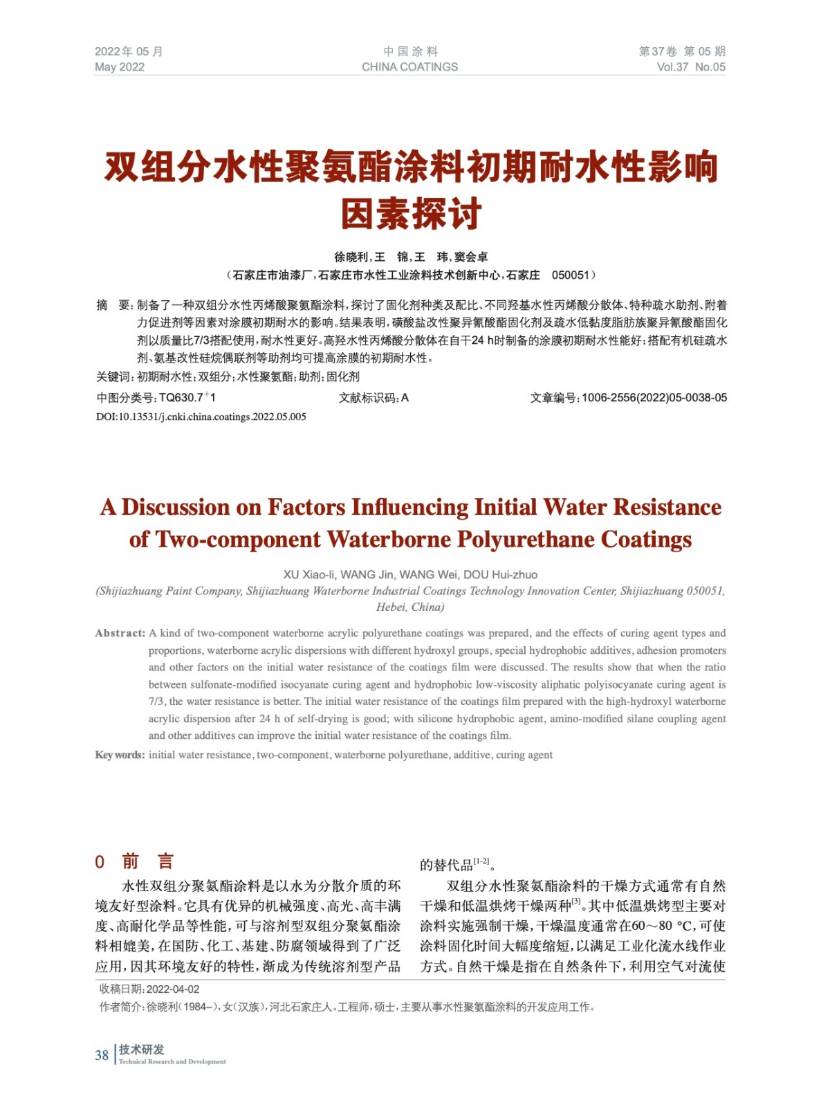 雙組分水性聚氨酯涂料初期耐水性影響因素探討