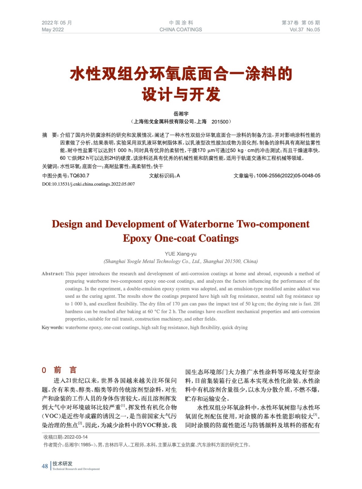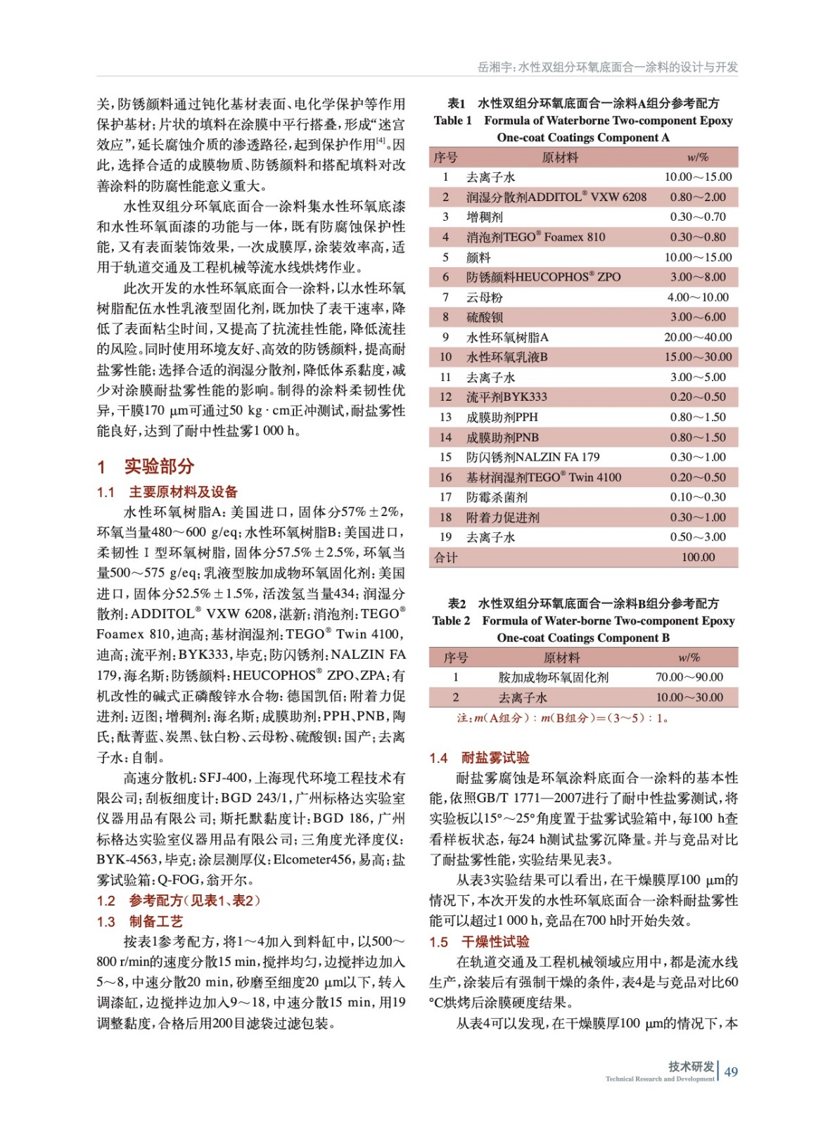 水性雙組分環(huán)氧底面合一涂料的設計與開發(fā)