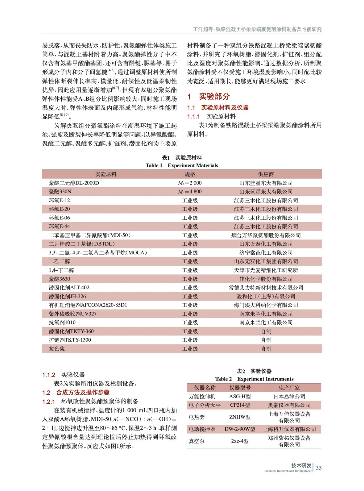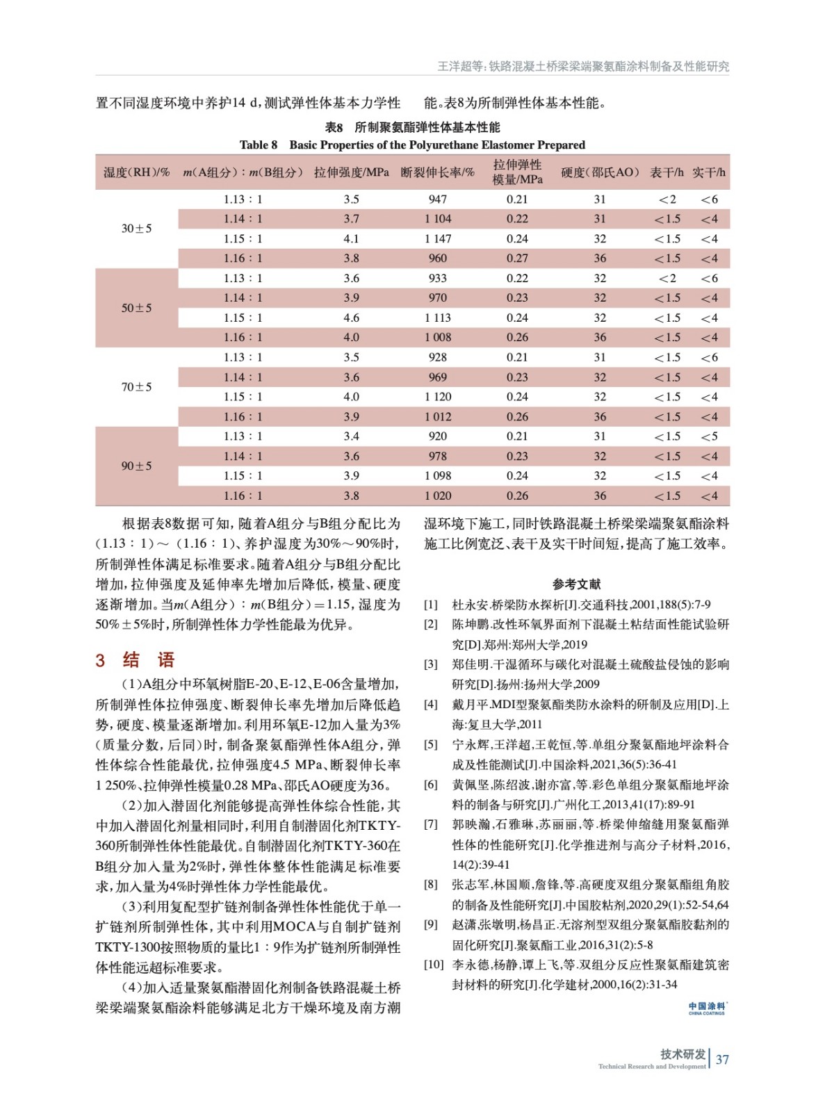 鐵路混凝土橋梁梁端聚氨酯涂料制備及性能研究