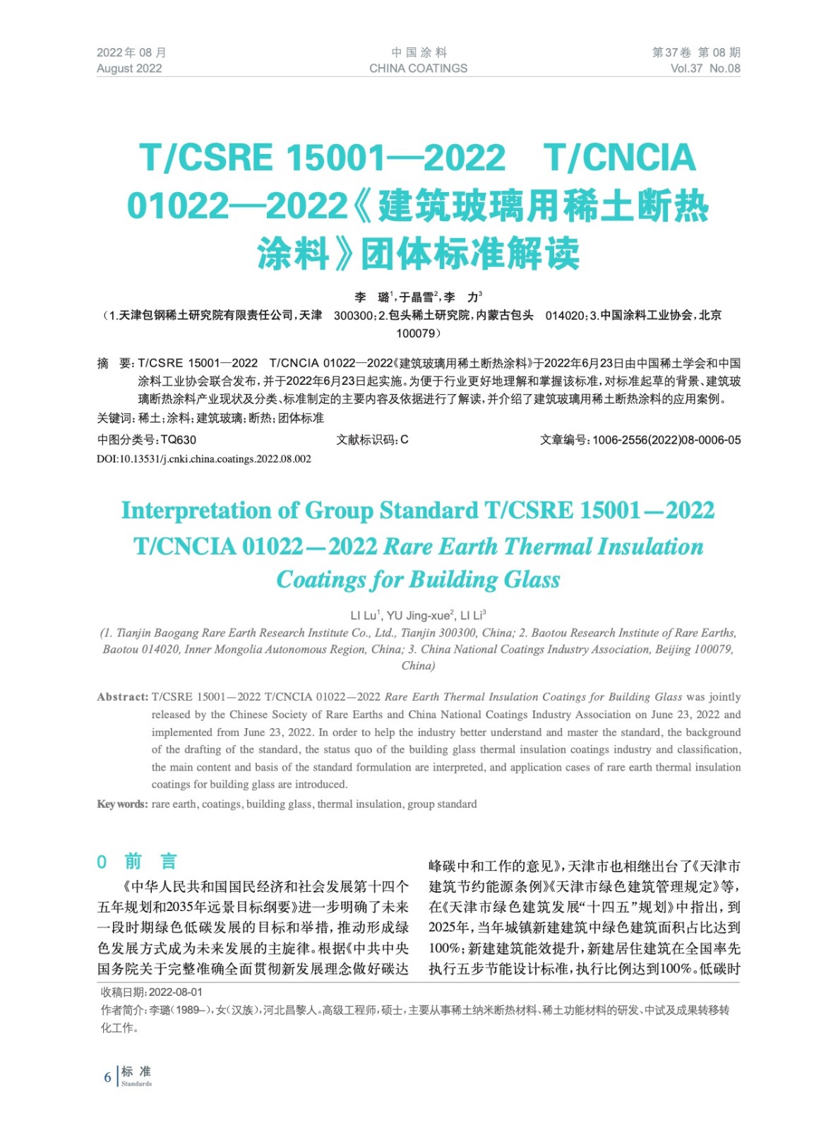 T/CSRE 15001—2022 T/CNCIA 01022—2022《建筑玻璃用稀土斷熱涂料》團體標準解讀