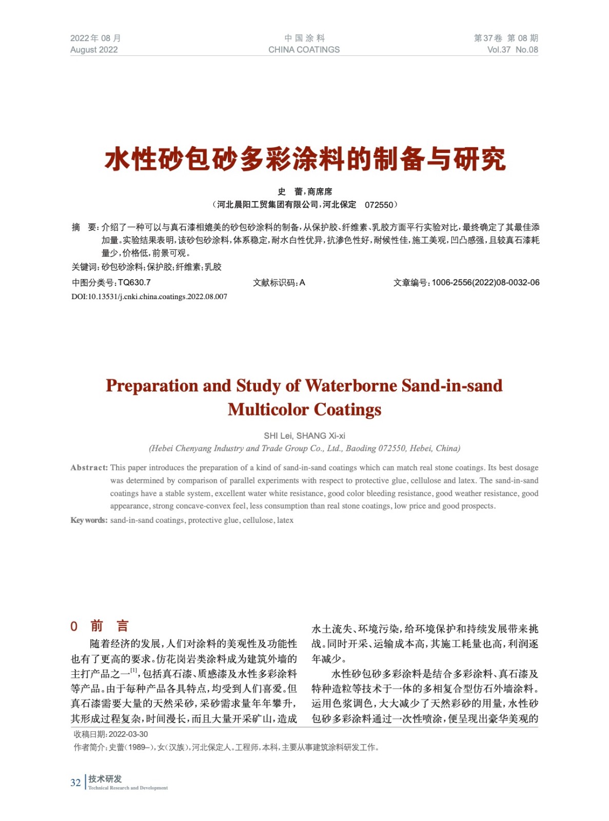 摘要:介紹了一種可以與真石漆相媲美的砂包砂涂料的制備,從保護(hù)膠、纖維素、乳膠方面平行實(shí)驗(yàn)對比,最終確定了其最佳添加量。實(shí)驗(yàn)結(jié)果表明,該砂包砂涂料,體系穩(wěn)定,耐水白性優(yōu)異,抗?jié)B色性好,耐候性佳,施工美觀,凹凸感強(qiáng),且較真石漆耗量少,價(jià)格低,前景可觀。