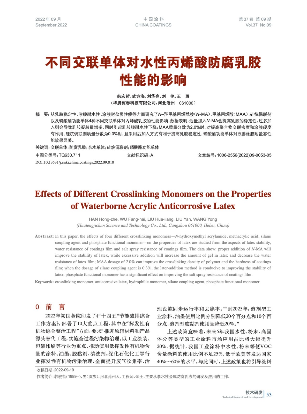 本文系作者@韓宏哲,武方海,劉華亮,劉 艷,王 勇 授權中國涂料網發表,并經中國涂料網編輯,未經允許不得轉載,如需轉載請聯系chinacoatingnet@vip.163.com