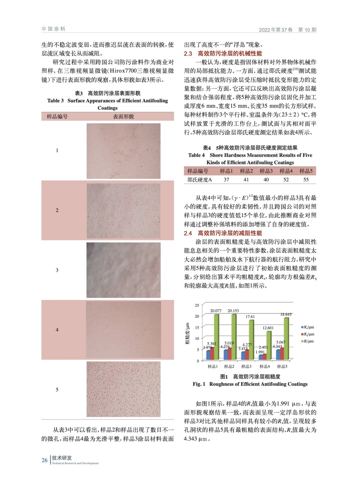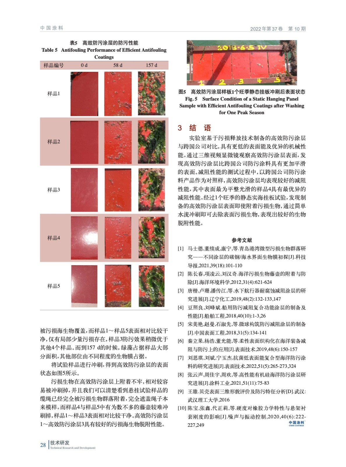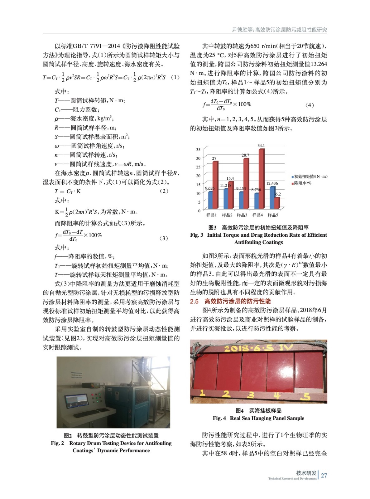 通過高效防污涂層(基于污損釋放技術)的靜態實海掛板,開展高效防污涂層實海環境下的關鍵特性參數劣化性能研究;收集高效防污涂層初始表面能、表面形貌、機械性能、防污性能及減阻性能等特性參數隨時間的變化趨勢。