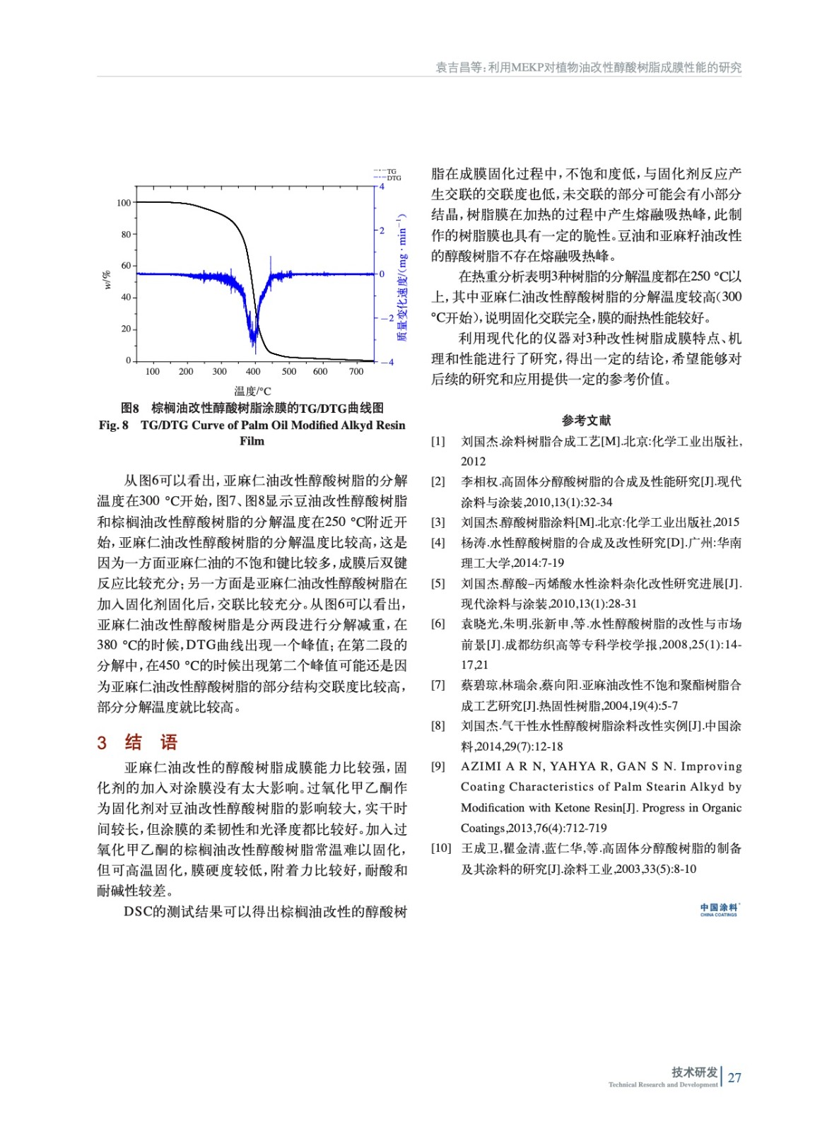 利用MEKP對植物油改性醇酸樹脂成膜性能的研究