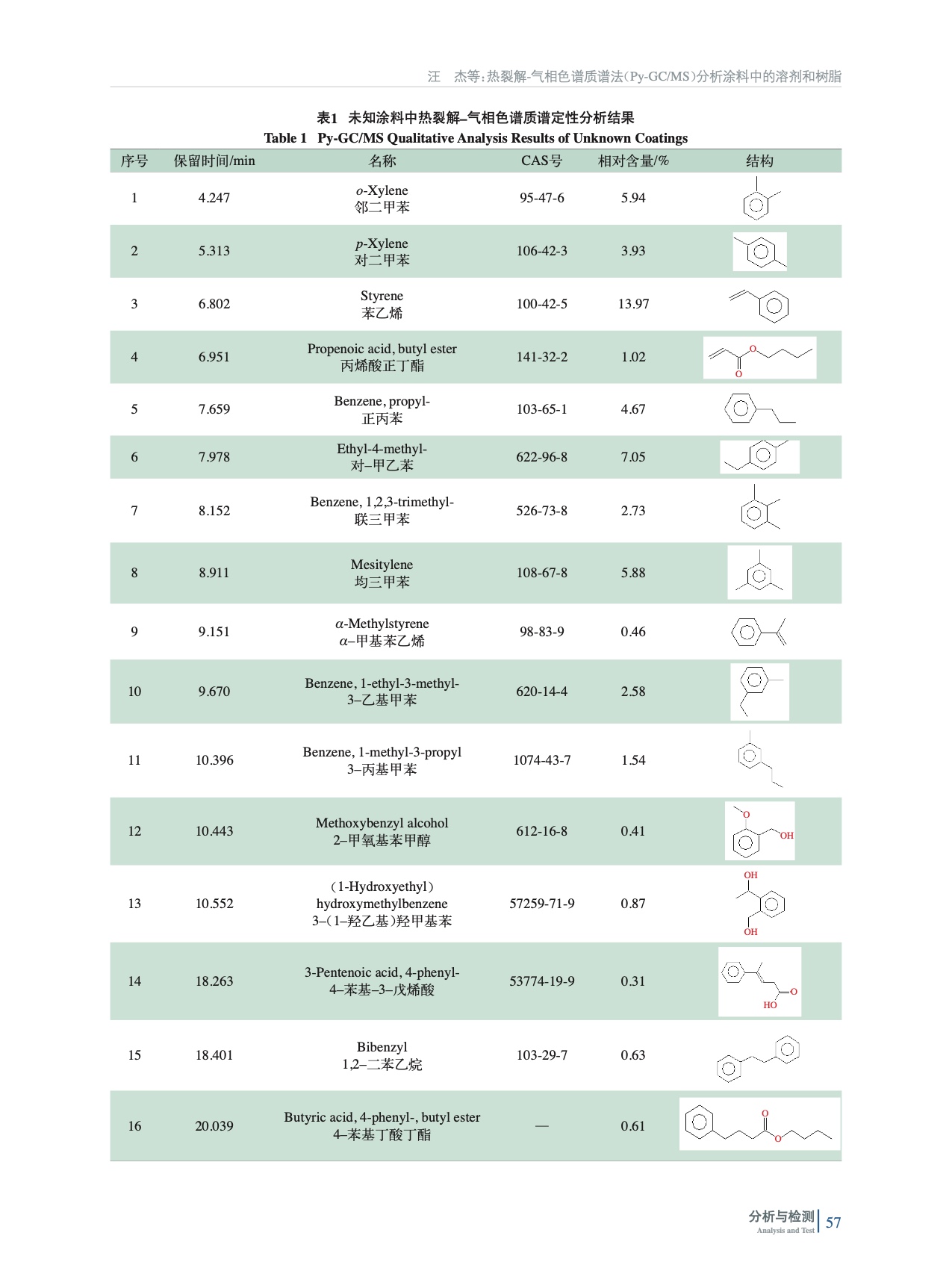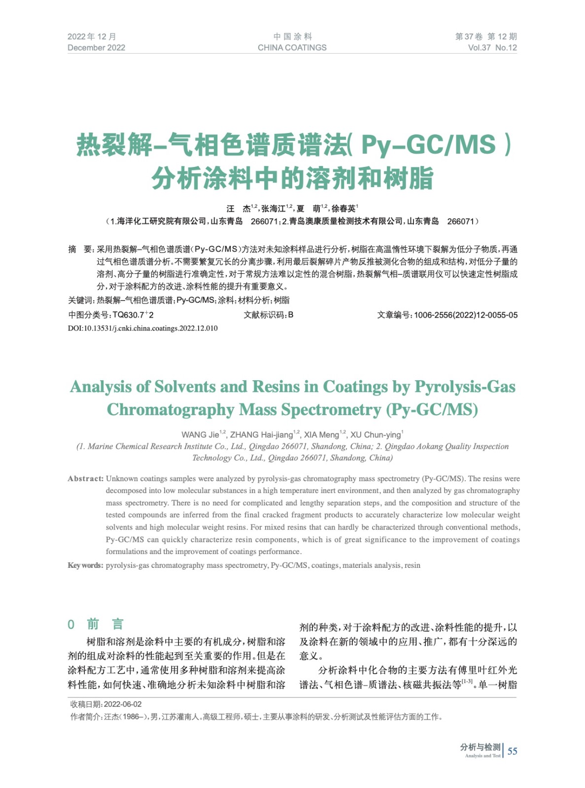 熱裂解–氣相色譜質譜法(Py-GC/MS)分析涂料中的溶劑和樹脂
