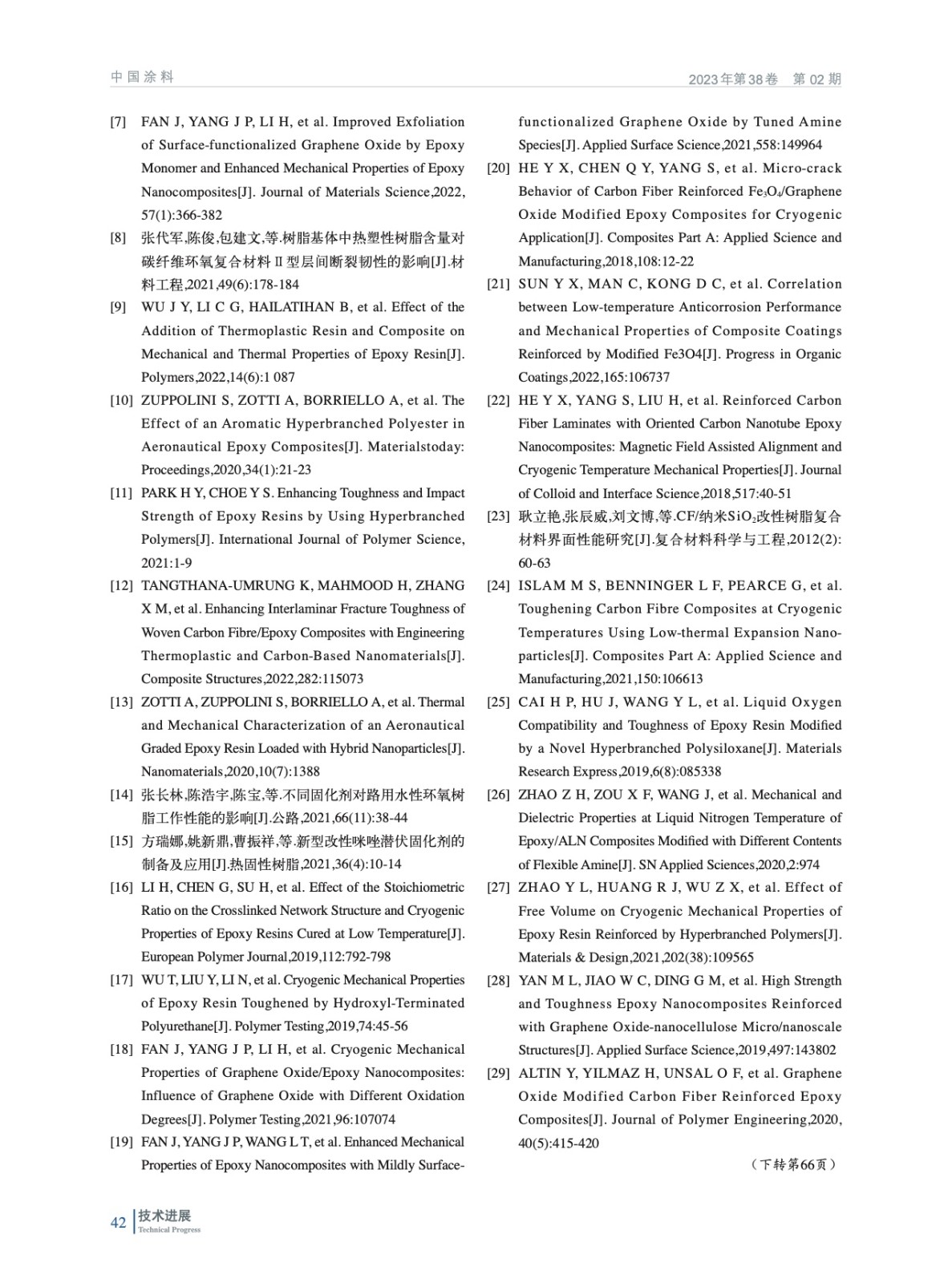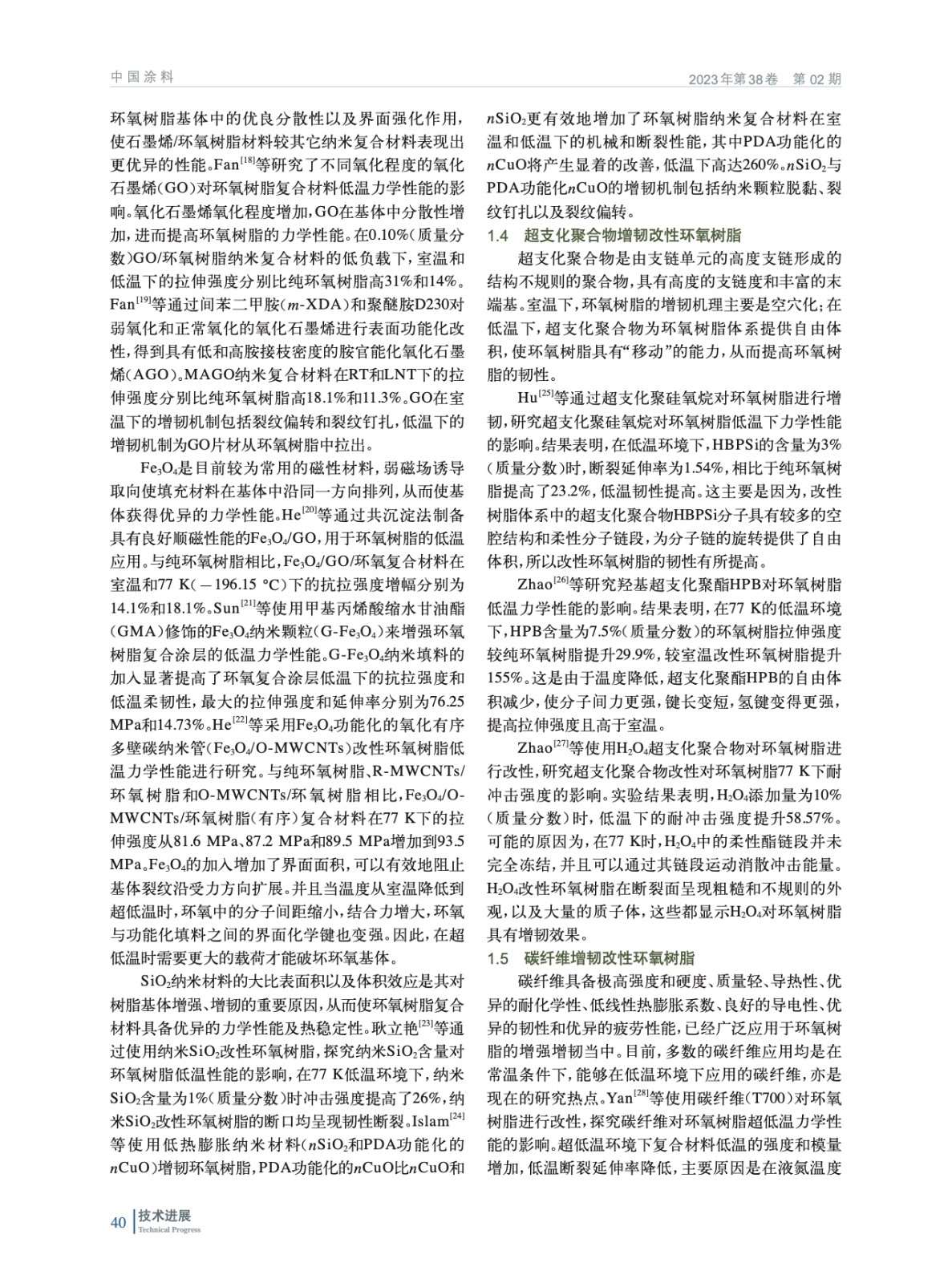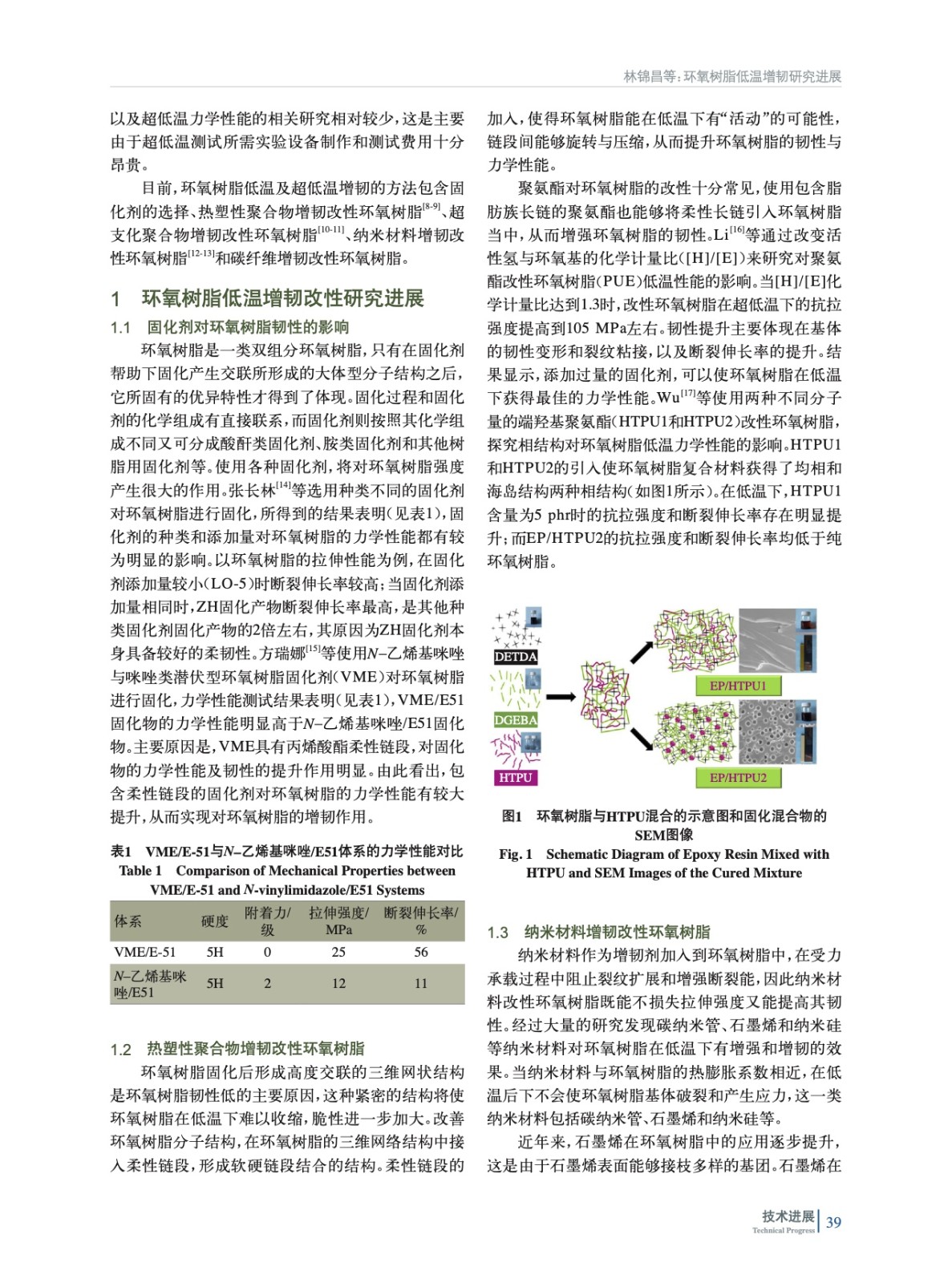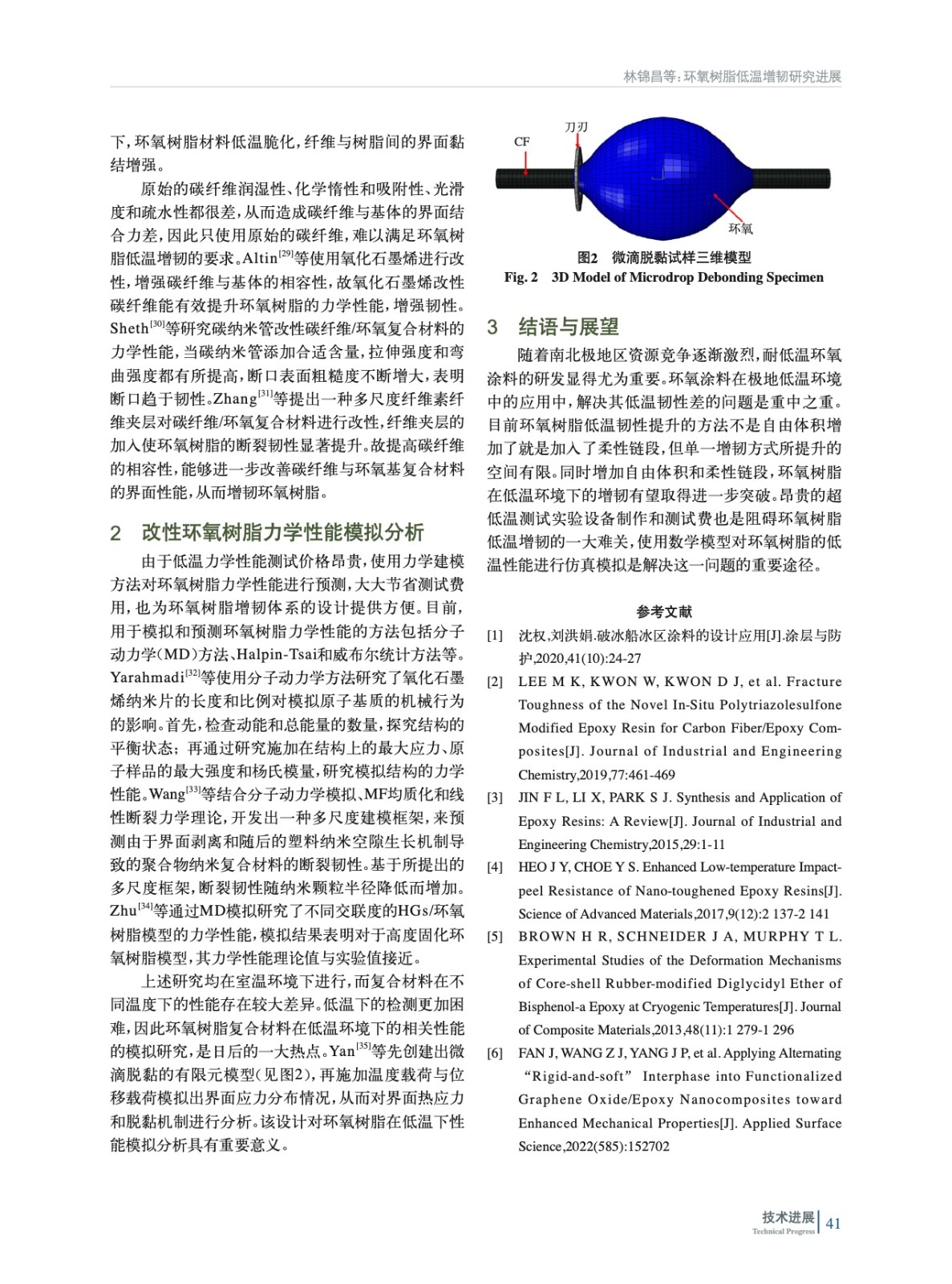 摘要:總結了環氧樹脂在低溫環境下的增韌方法,即固化劑的選擇、熱塑性聚合物增韌改性環氧樹脂、納米材料增韌改性環氧樹脂、超支化聚合物增韌改性環氧樹脂和碳纖維增韌改性環氧樹脂,對近幾年國內外環氧樹脂低溫增韌研究成果和改性環氧樹脂力學性能模擬分析進行綜述。最后,對環氧樹脂低溫增韌研究的發展趨勢作出了展望。