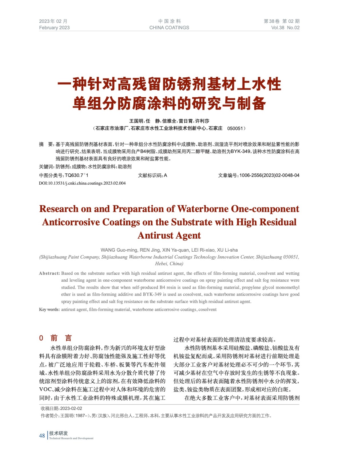 發表于2023-05-04 16:14:54| 次閱讀| 來源中國涂料| 作者王國明,任 靜,信雅全,雷日霄,許利莎
