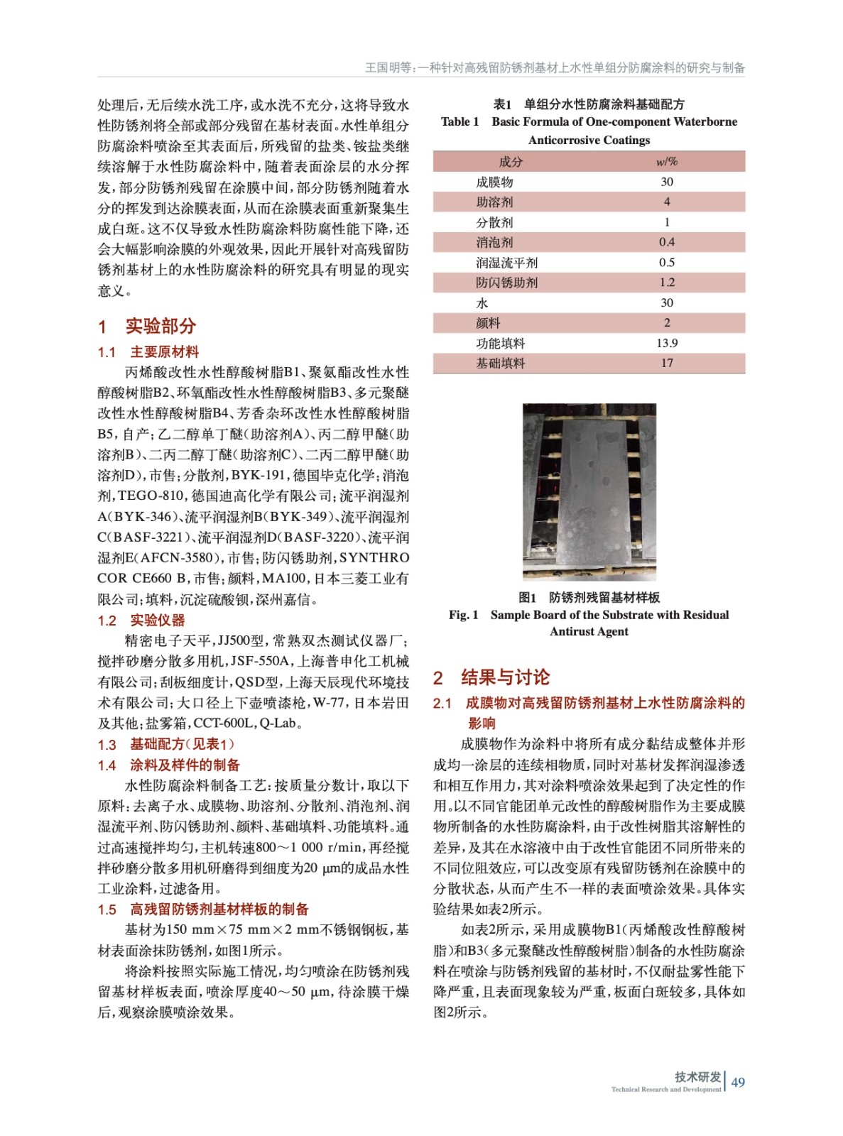 一種針對高殘留防銹劑基材上水性單組分防腐涂料的研究與制備