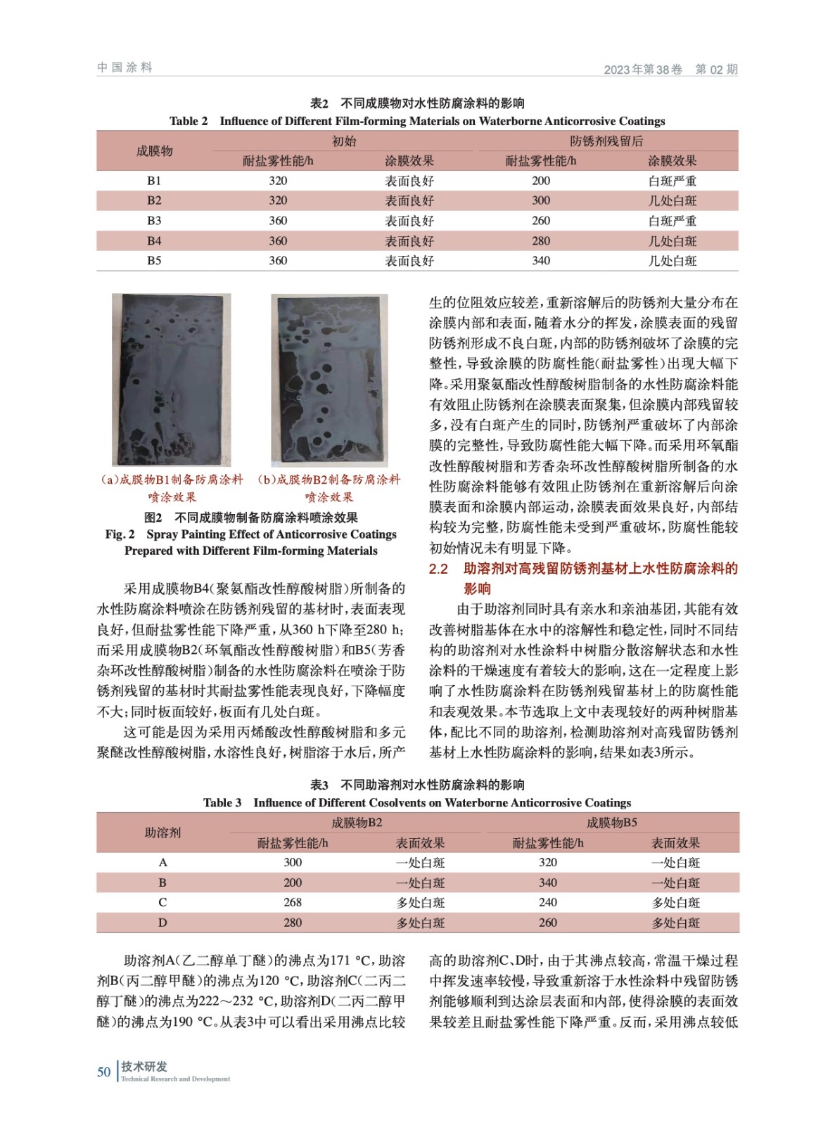 摘要:基于高殘留防銹劑基材表面,針對一種單組分水性防腐涂料中成膜物、助溶劑、潤濕流平劑對噴涂效果和耐鹽霧性能的影響進行研究。結果表明,當成膜物采用自產B4樹脂、成膜助劑采用丙二醇甲醚、助溶劑為BYK-349,該種水性防腐涂料在高殘留防銹劑基材表面具有良好的噴涂效果和耐鹽霧性能。