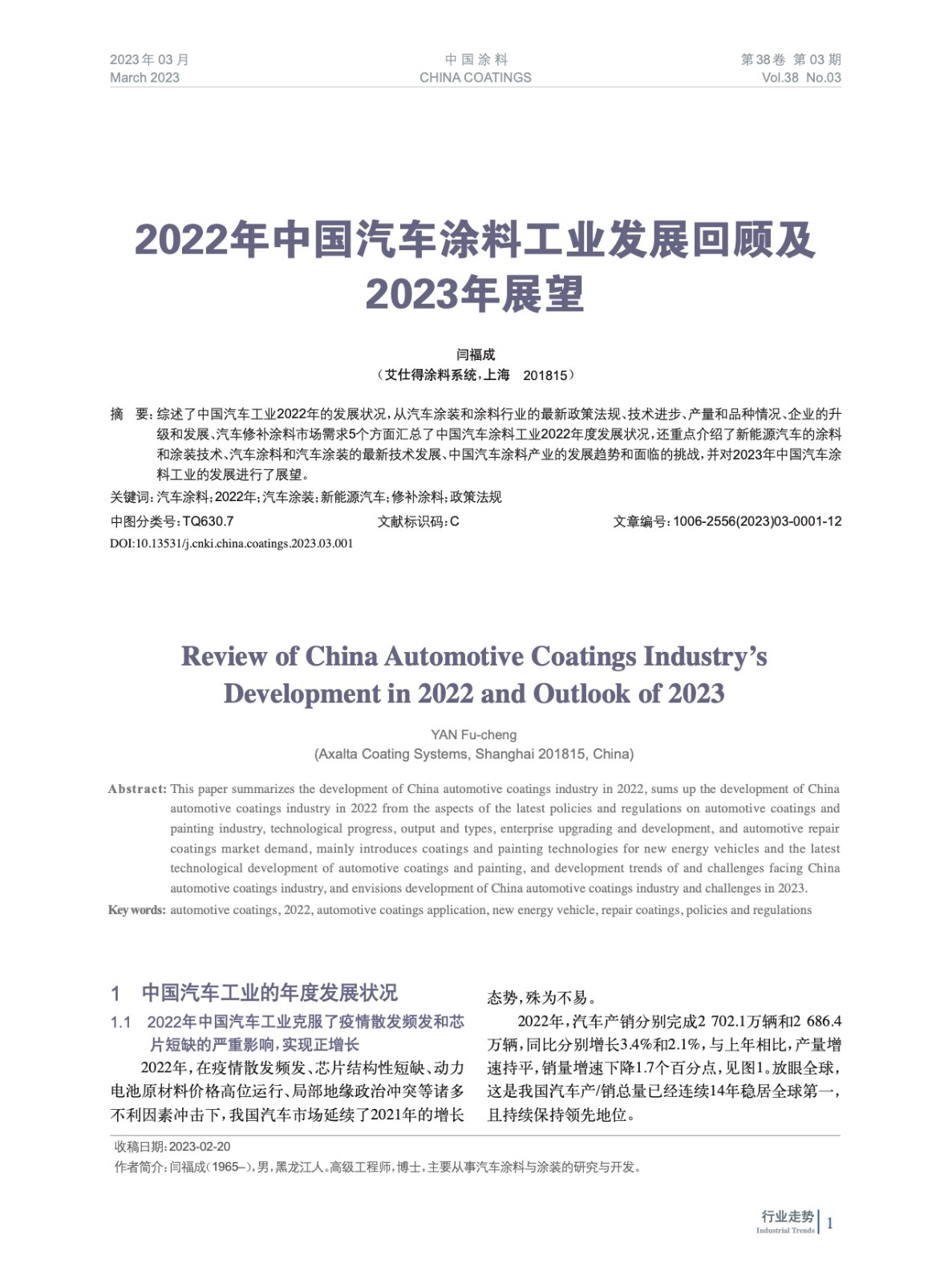 2022年中國(guó)汽車涂料工業(yè)發(fā)展回顧及2023年展望