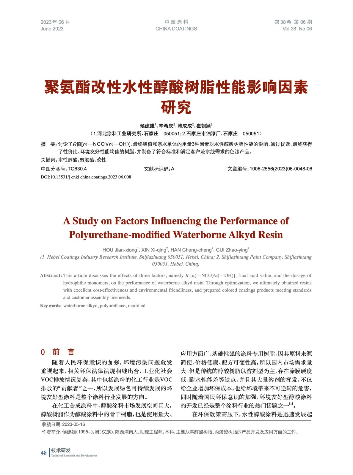 本文系作者@候建雄,辛希慶,韓成成,崔朝穎 授權(quán)中國涂料網(wǎng)發(fā)表,并經(jīng)中國涂料網(wǎng)編輯,未經(jīng)允許不得轉(zhuǎn)載,如需轉(zhuǎn)載請聯(lián)系chinacoatingnet@vip.163.com