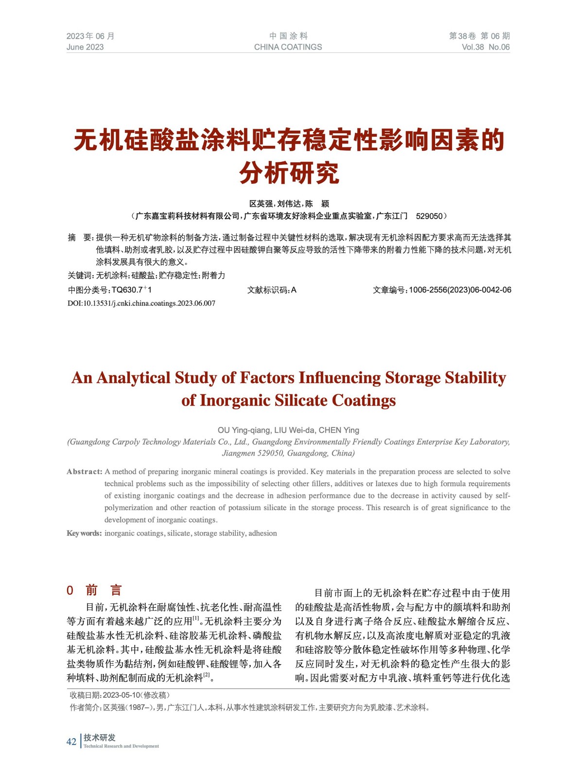 無機(jī)硅酸鹽涂料貯存穩(wěn)定性影響因素的分析研究