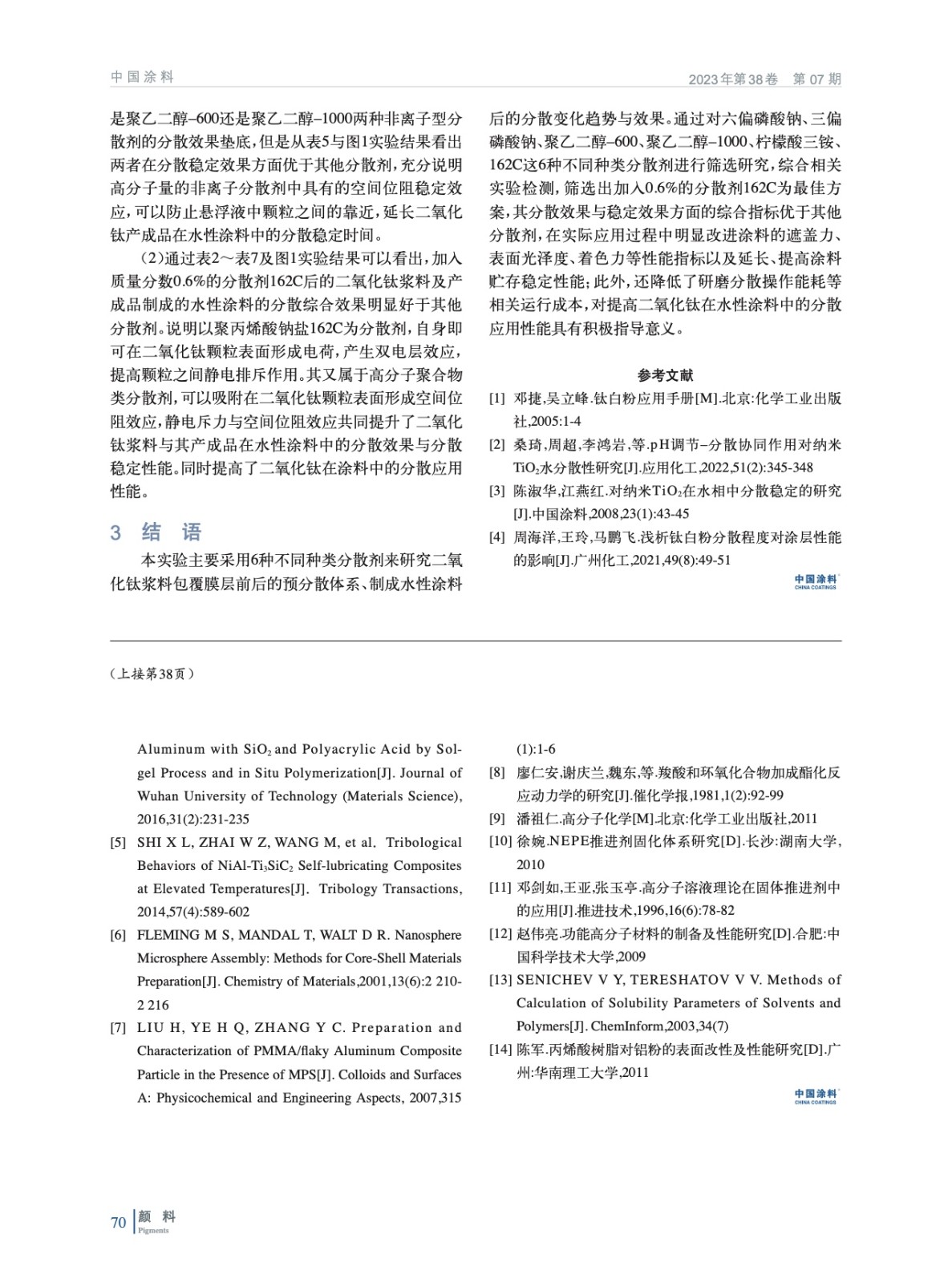 通過采用大量對體系黏度、粒度、分散細度、光澤度等檢測手段,研究氯化法二氧化鈦漿料與不同種類分散劑組成的漿料體系在包覆膜層前后對漿料預分散體系、制成水性涂料后的分散變化趨勢與效果,確定較佳的分散劑種類和方案,以便提高二氧化鈦產成品在水性涂料中的分散應用性能。