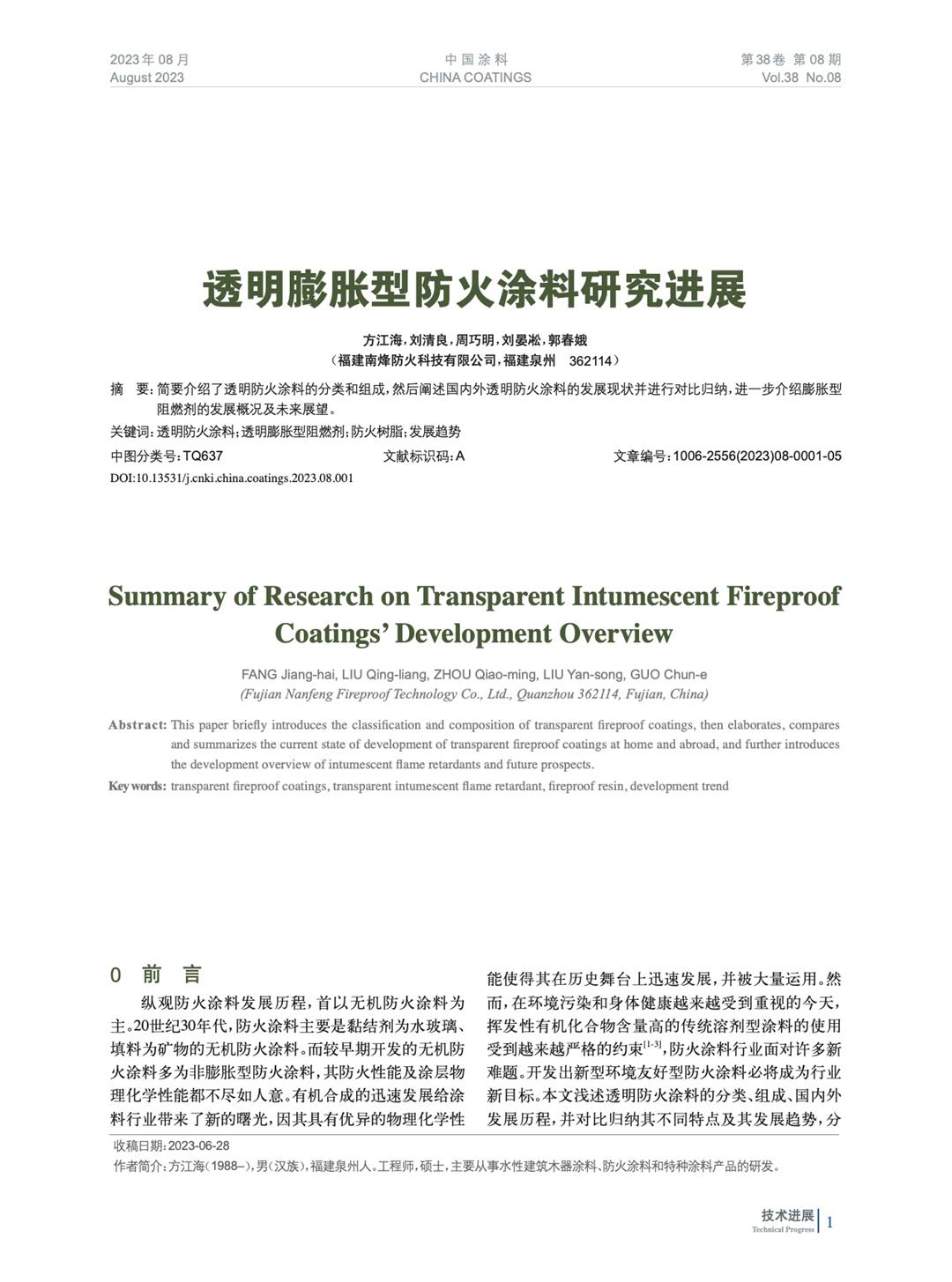 本文系作者@方江海,劉清良,周巧明,劉晏凇,郭春娥 授權(quán)中國涂料網(wǎng)發(fā)表,并經(jīng)中國涂料網(wǎng)編輯,未經(jīng)允許不得轉(zhuǎn)載,如需轉(zhuǎn)載請聯(lián)系chinacoatingnet@vip.163.com