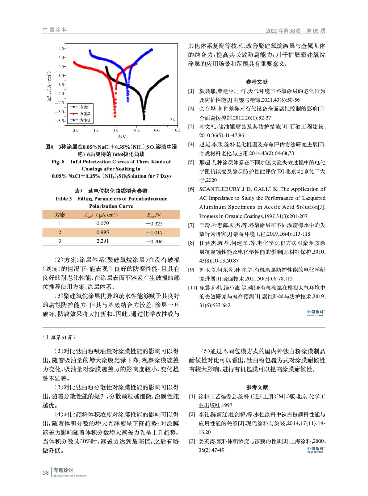 針對鈦白粉粒度、吸油量、分散性、顏料體積濃度(PVC)對涂膜性能的影響進行研究,通過對比涂膜光澤及遮蓋力的測試結果,確定鈦白粉最佳性能參數,并選取不同包覆方式的國內產品與國外產品進行老化試驗,結果顯示經有機包覆處理的國外產品R2其耐候性能更佳,建議對涂膜用鈦白粉進行有機包覆。