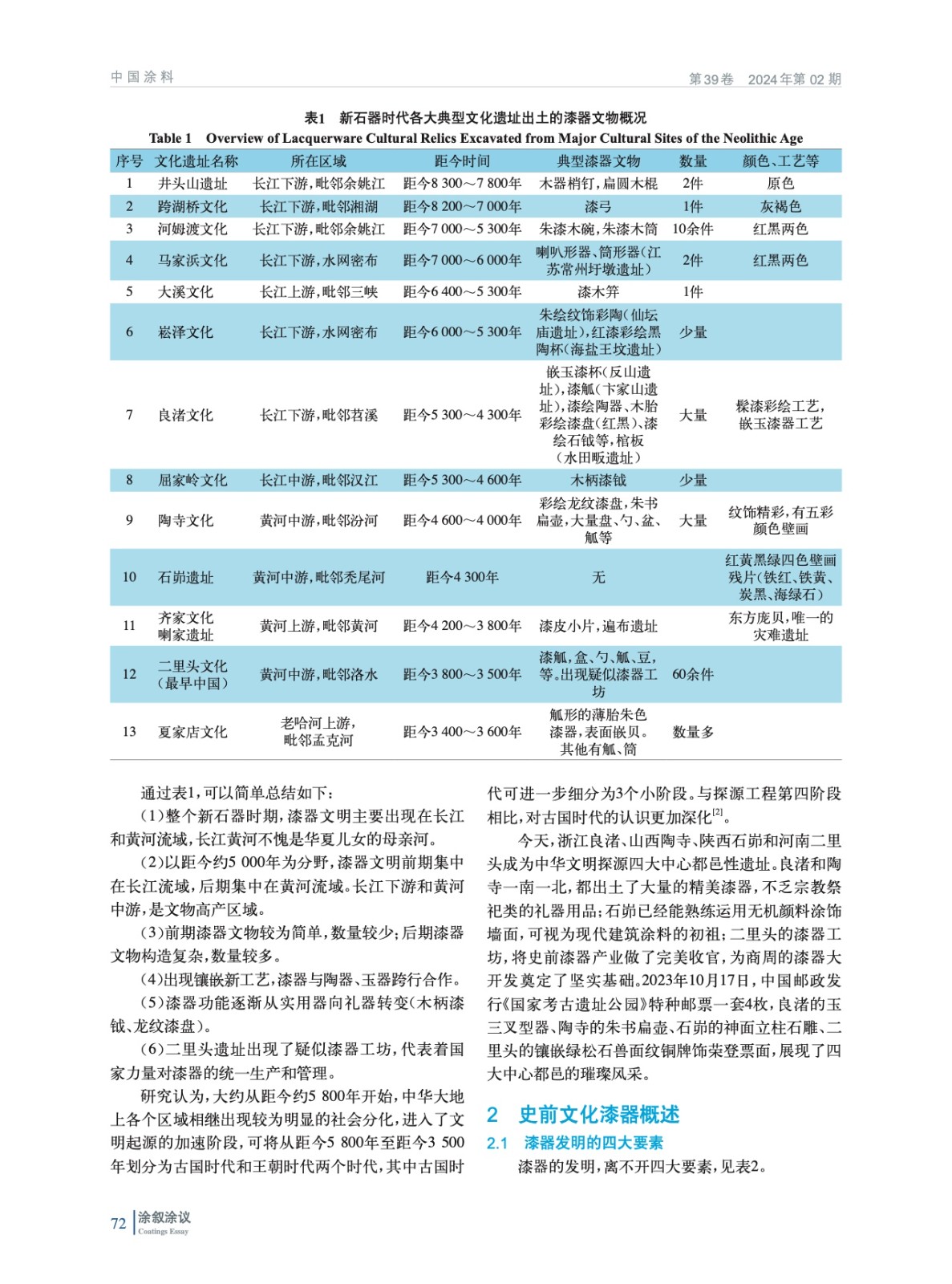 展示了史前漆器的出土概況,提出了漆器發(fā)明的四大要素,對史前重要漆器文物進行簡介,分析論證史前用漆文獻材料,最后對史前漆器做了綜述總結(jié)。