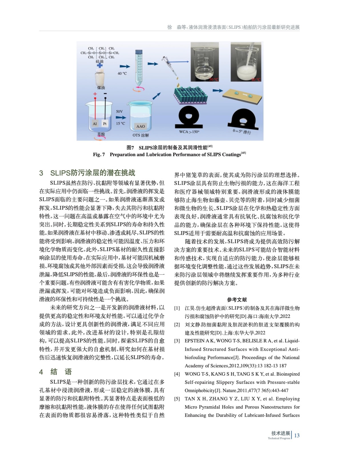 液體潤滑浸漬表面(SLIPS)船舶防污涂層最新研究進展