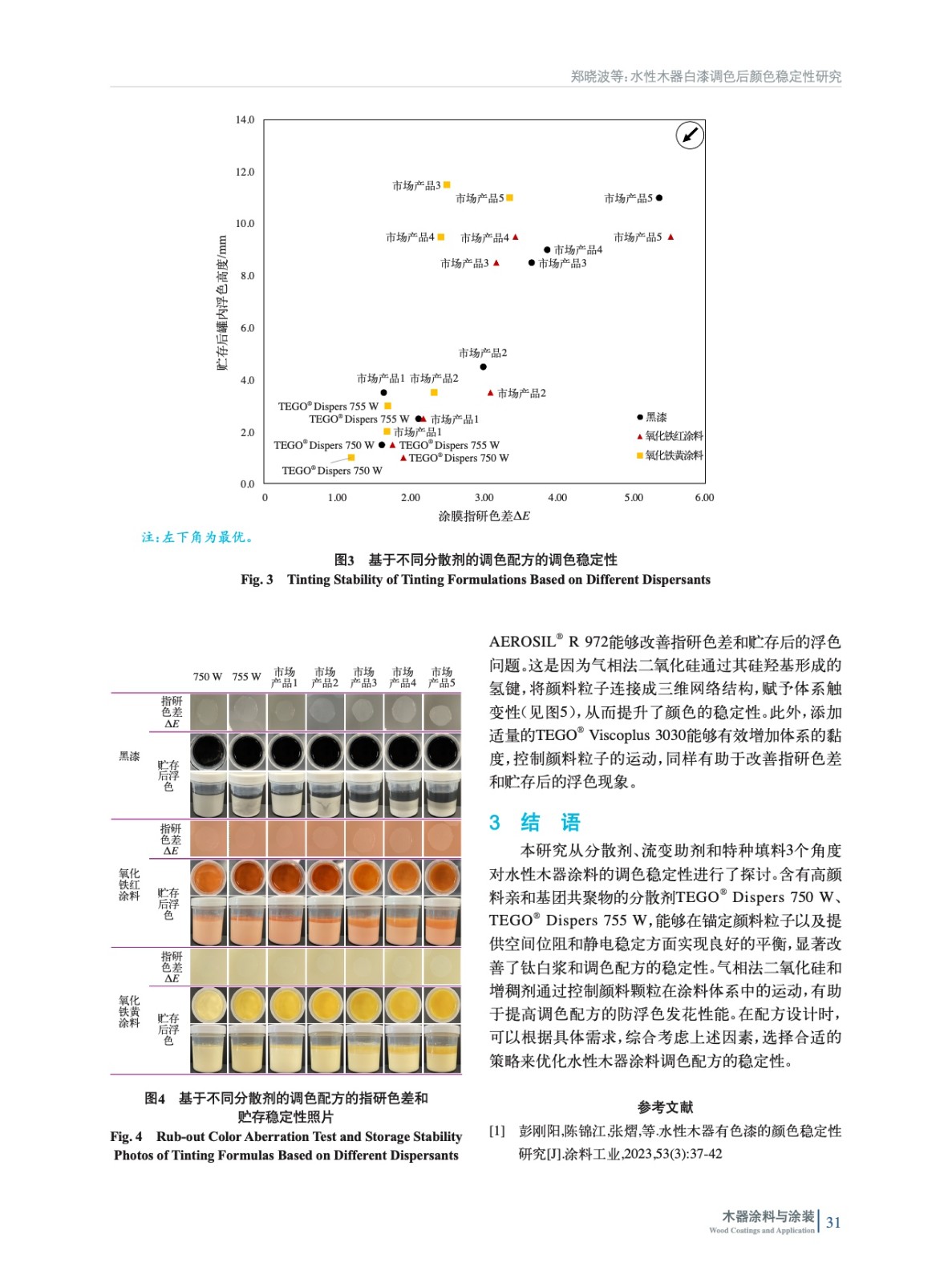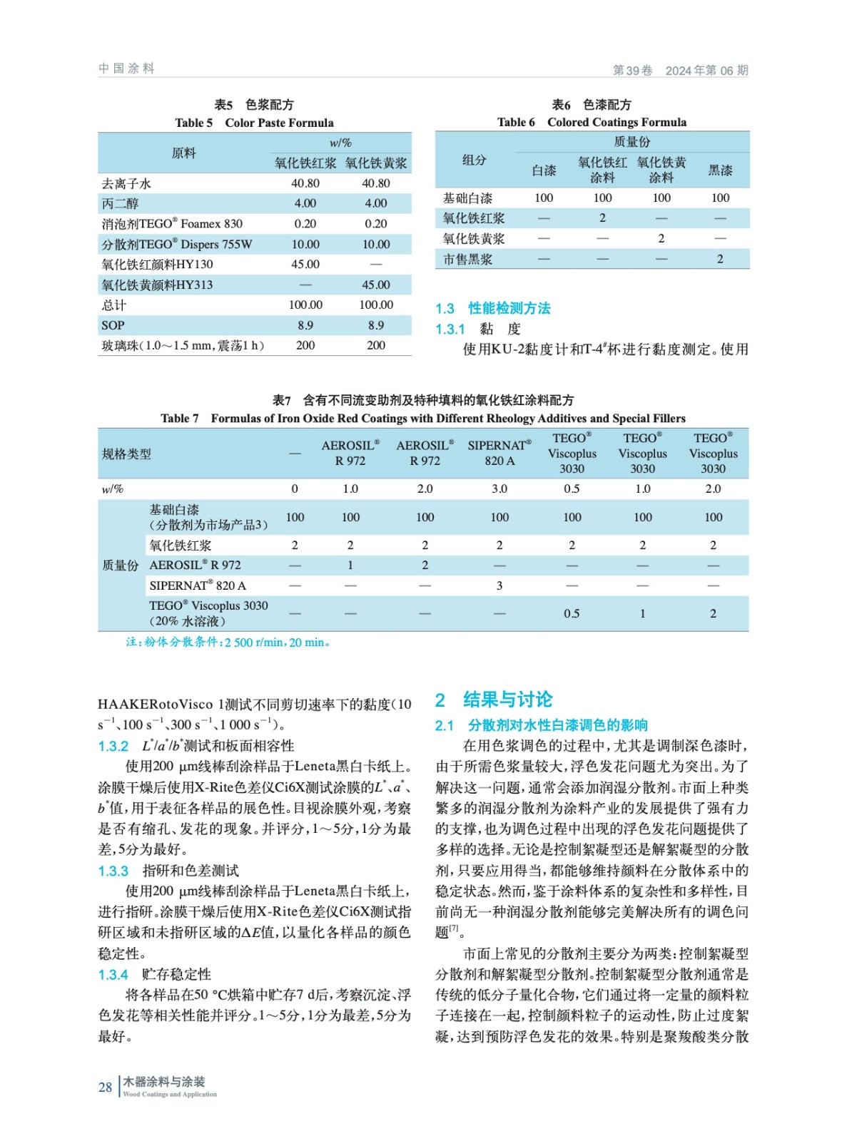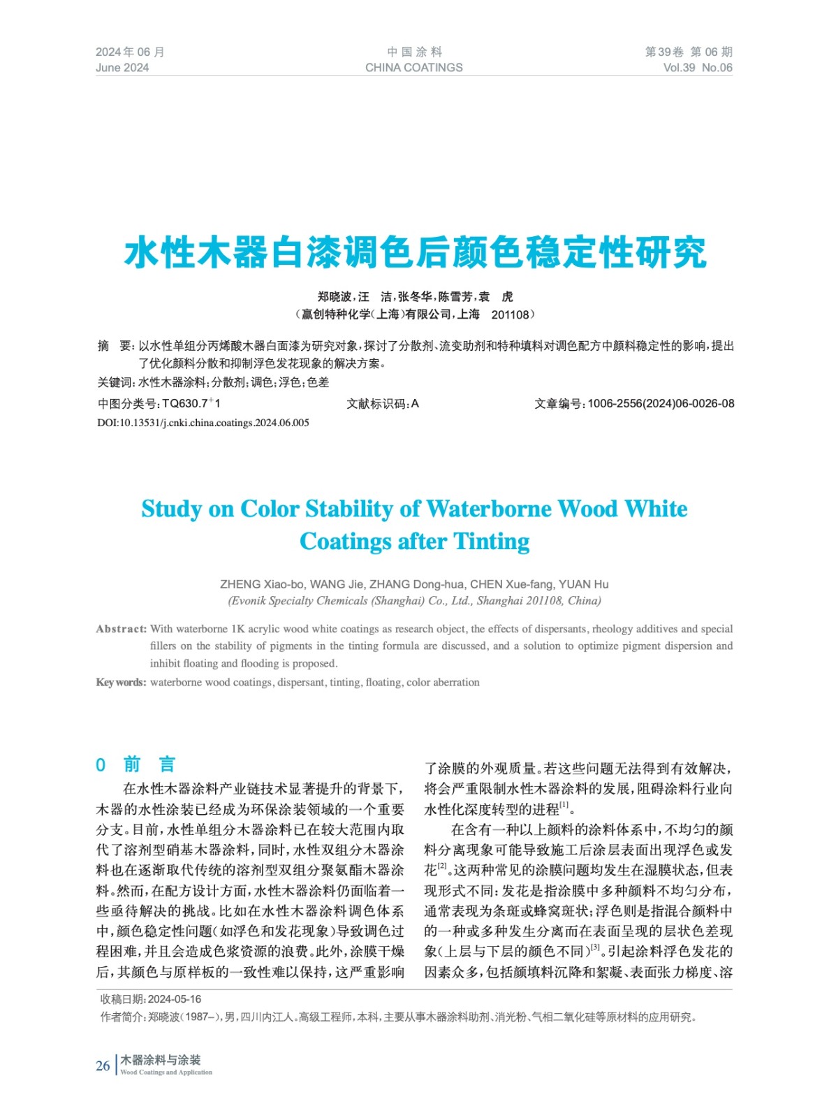 以水性單組分丙烯酸木器白面漆為研究對象,探討了分散劑、流變助劑和特種填料對調色配方中顏料穩定性的影響,提出了優化顏料分散和抑制浮色發花現象的解決方案。