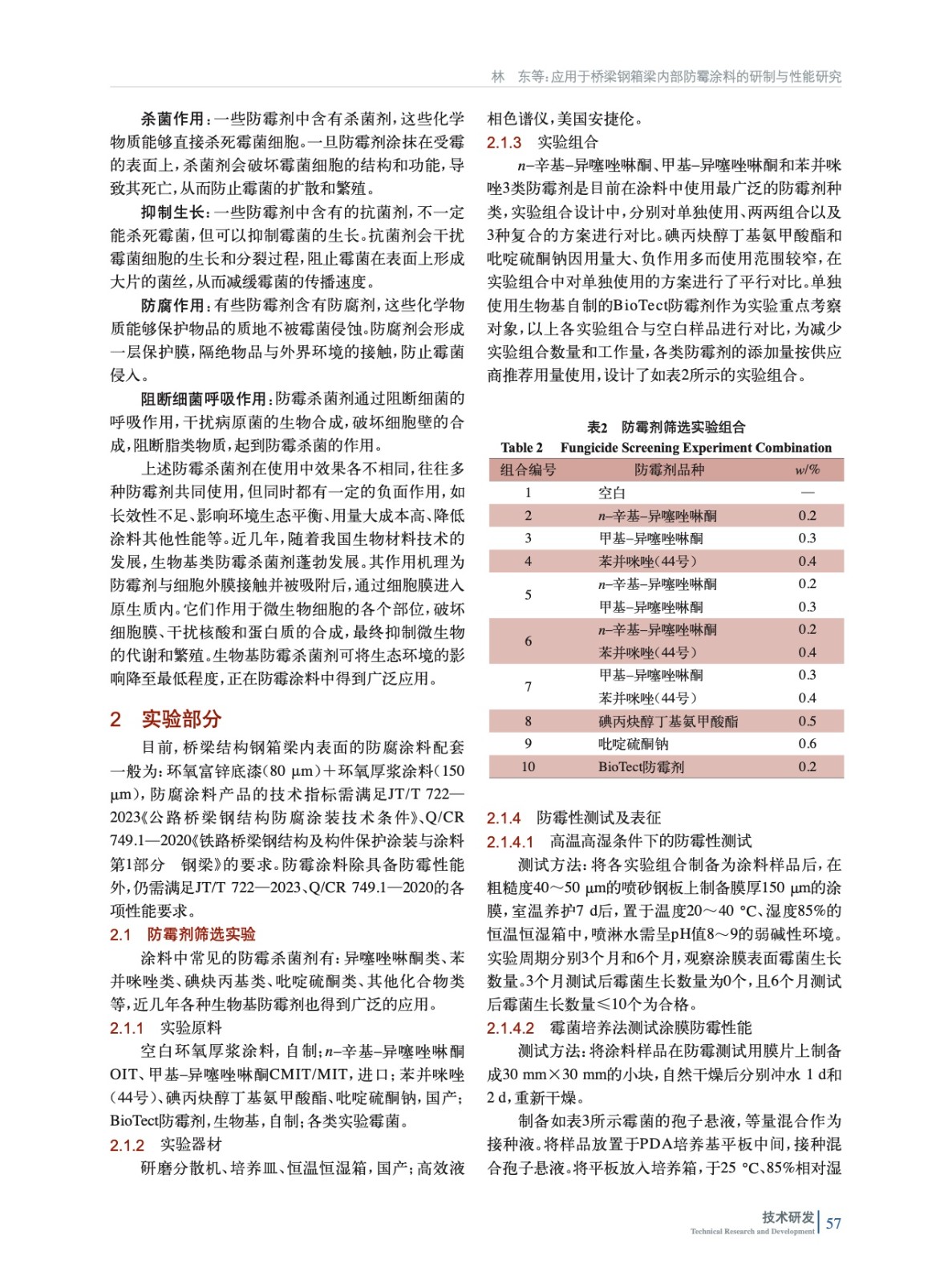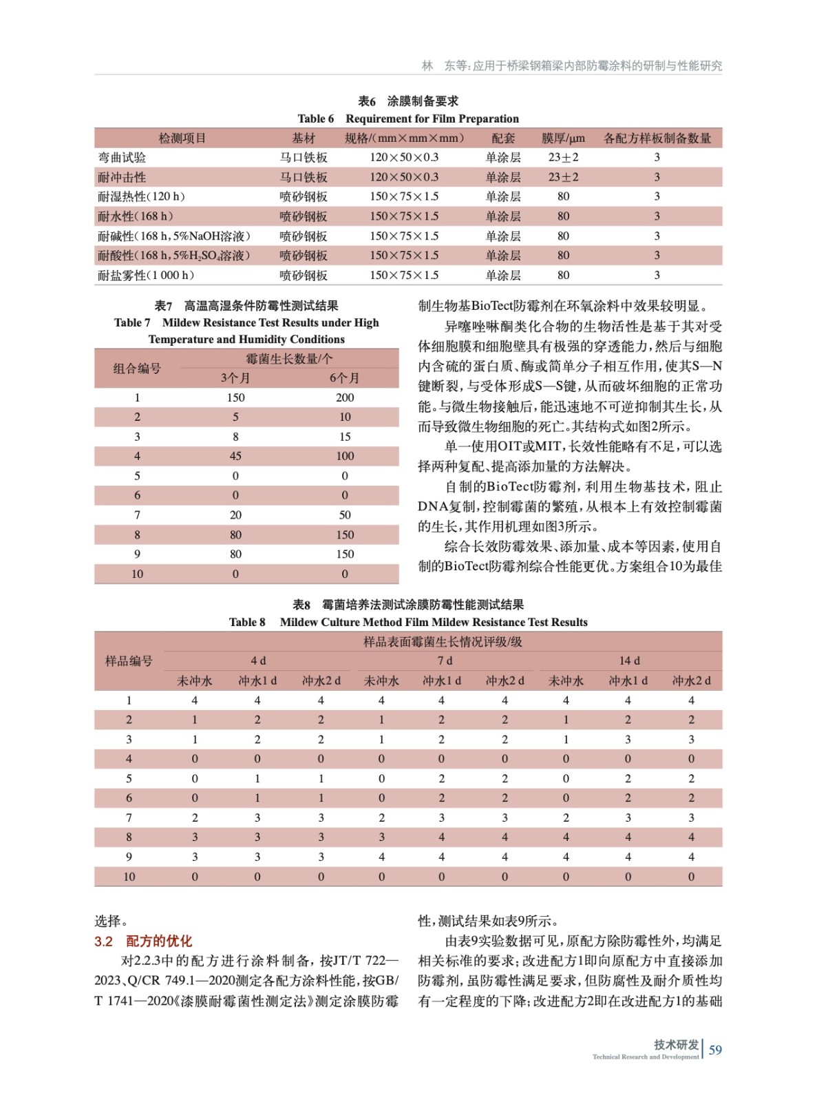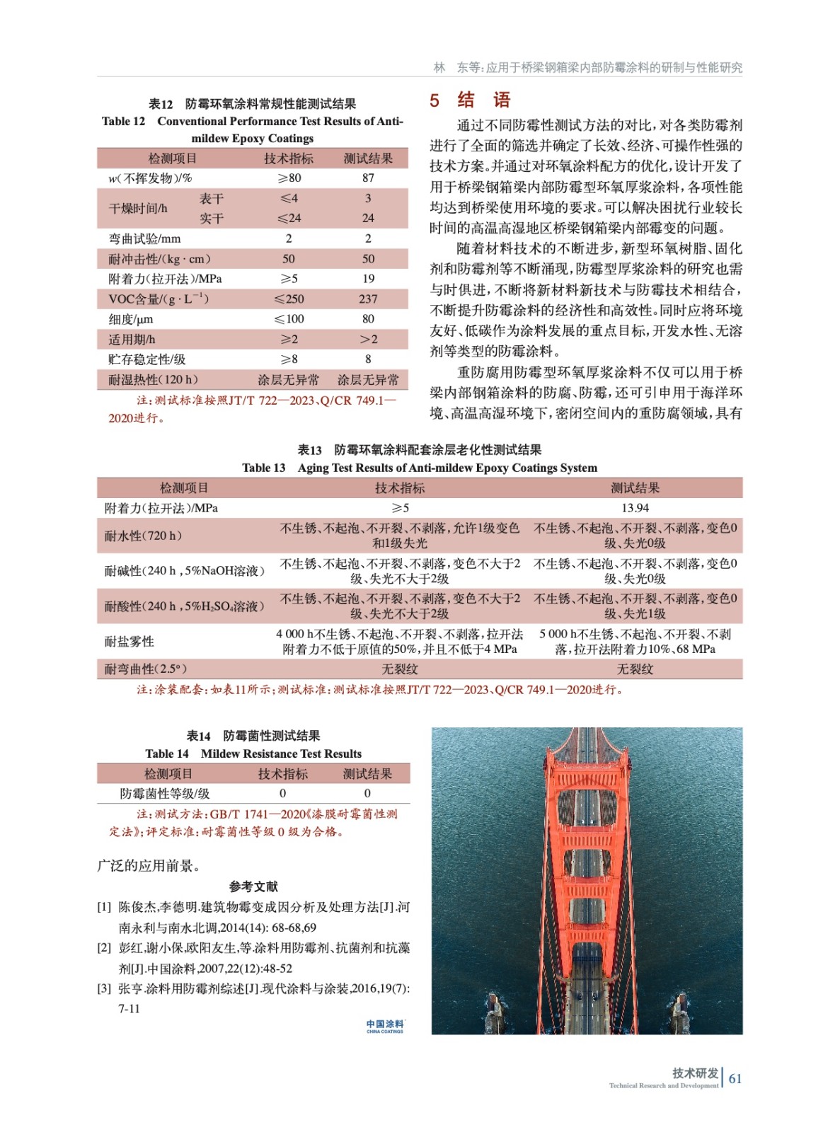 應用于橋梁鋼箱梁內部防霉涂料的研制與性能研究