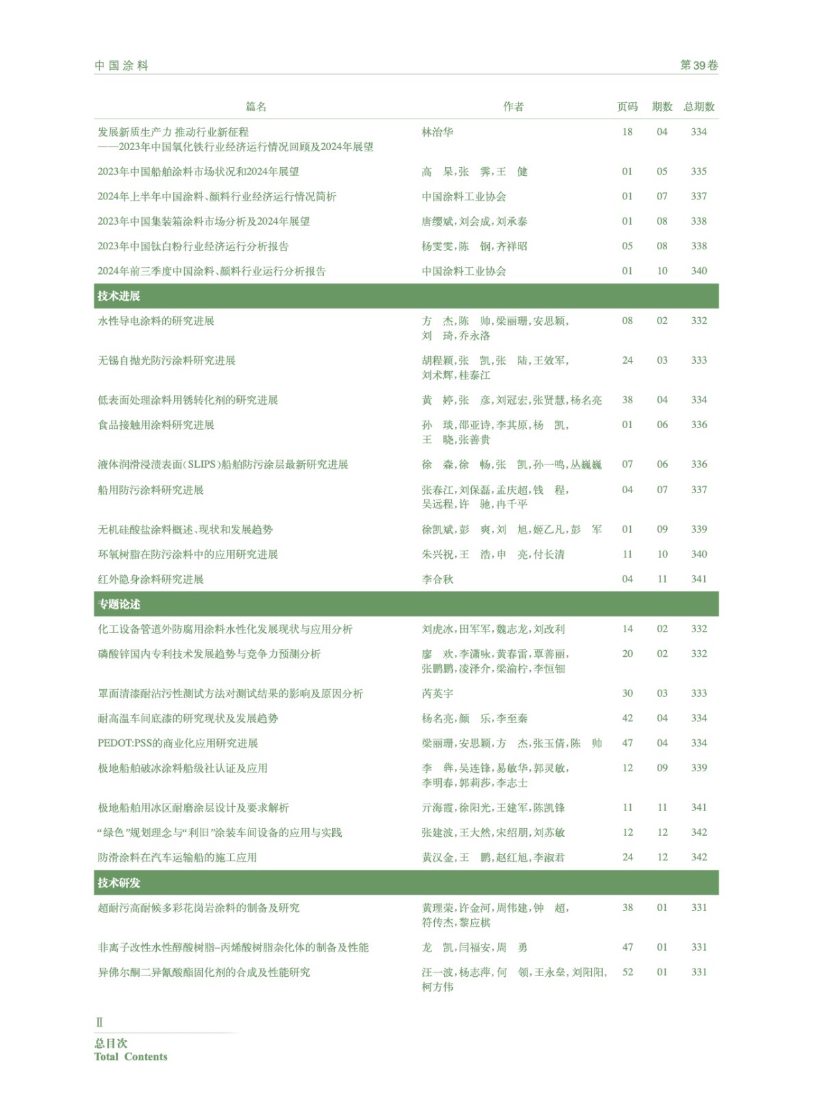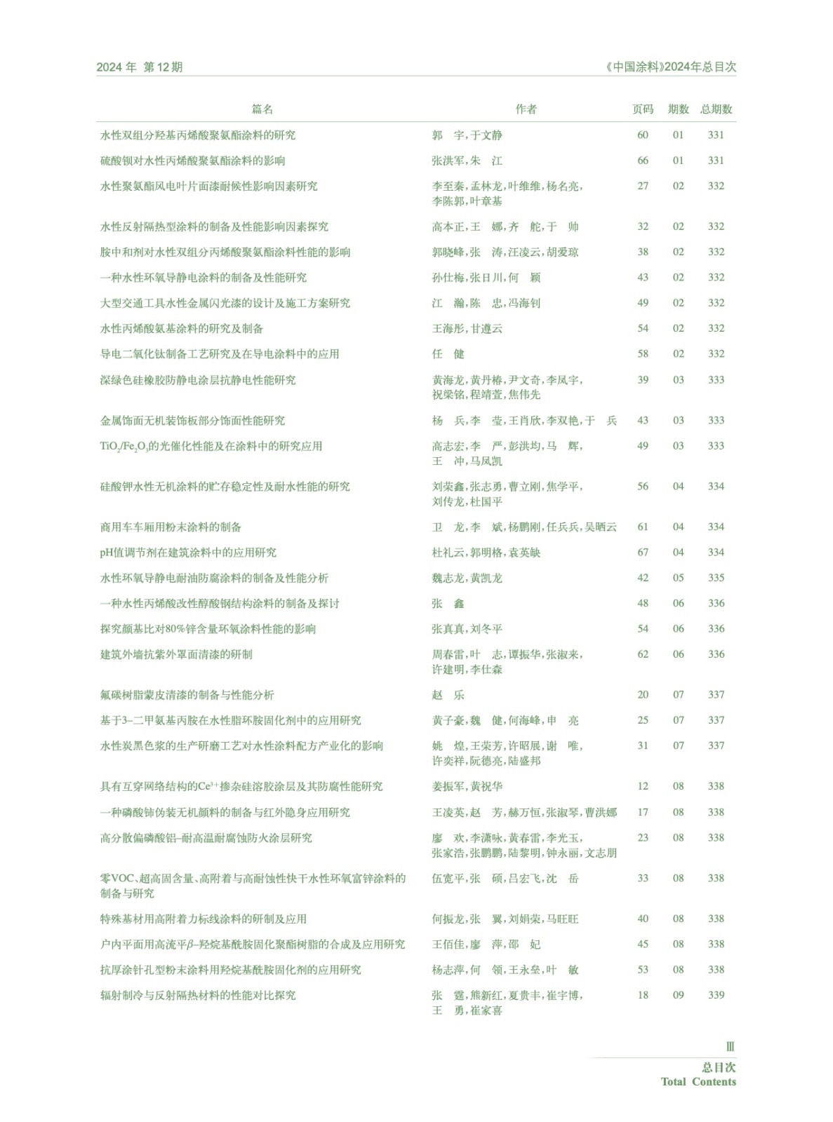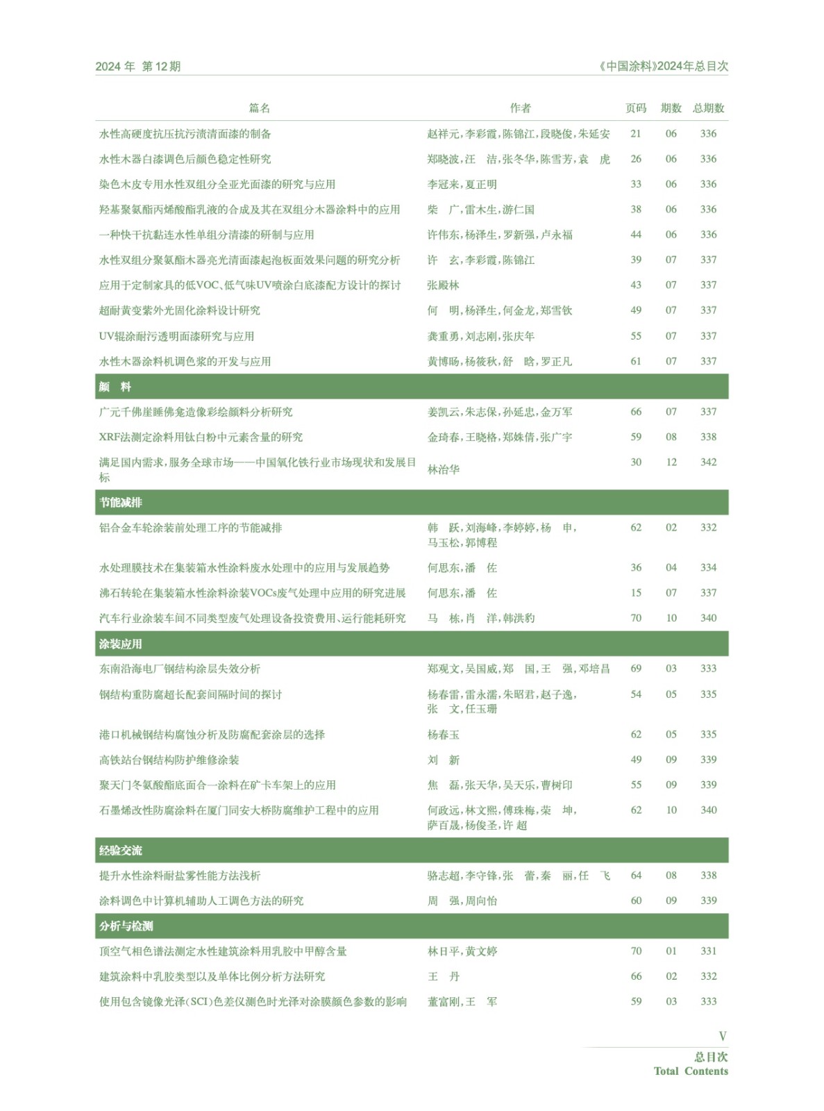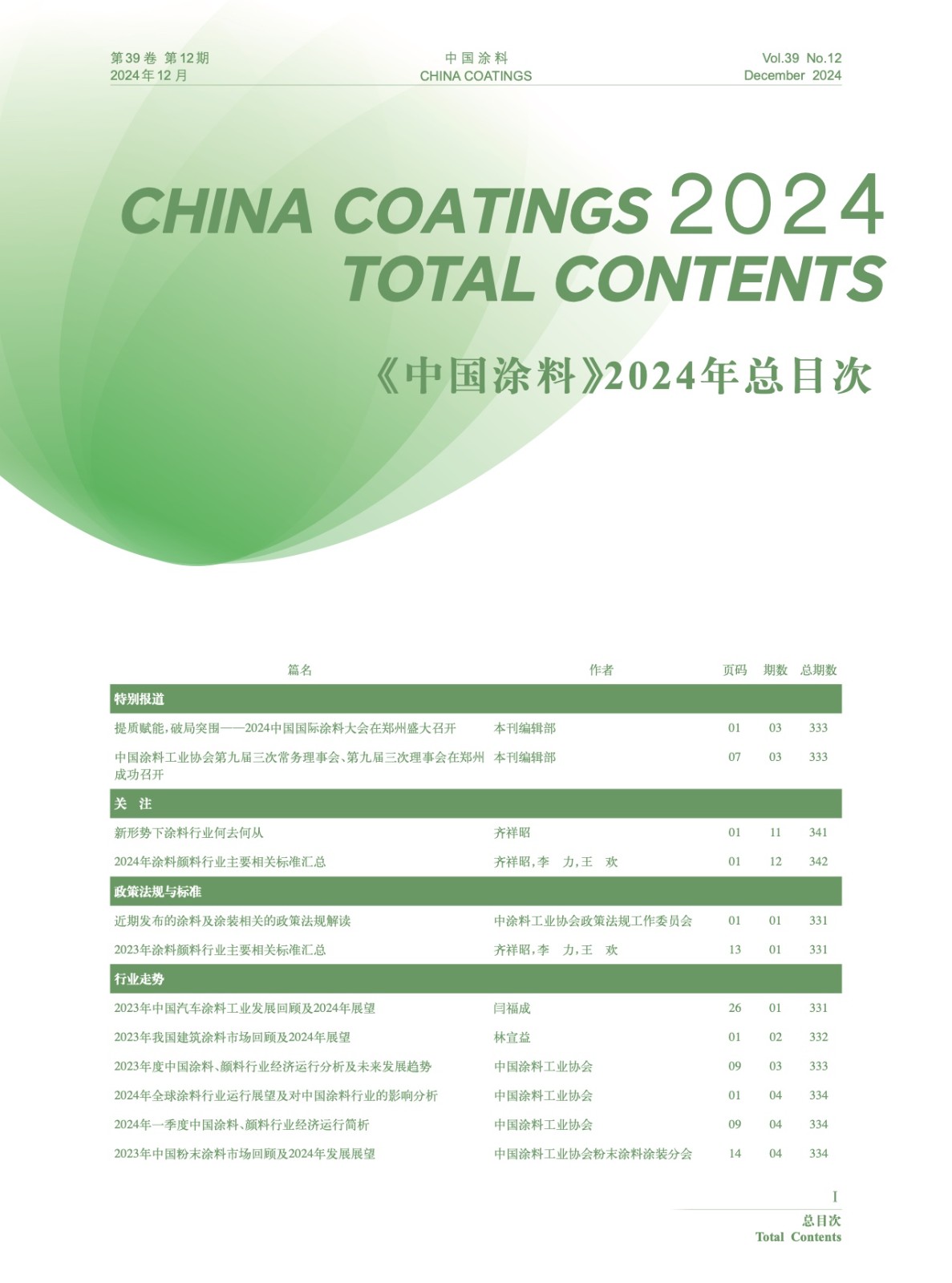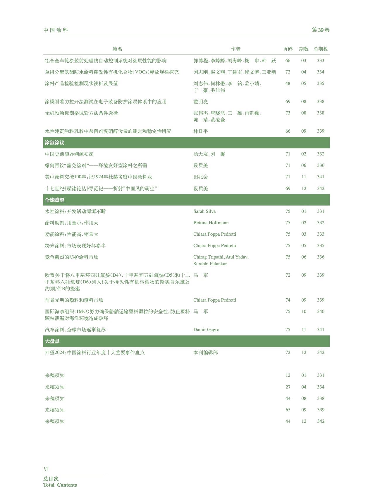 Ⅰ-Ⅵ《中國(guó)涂料》2024年總目次
