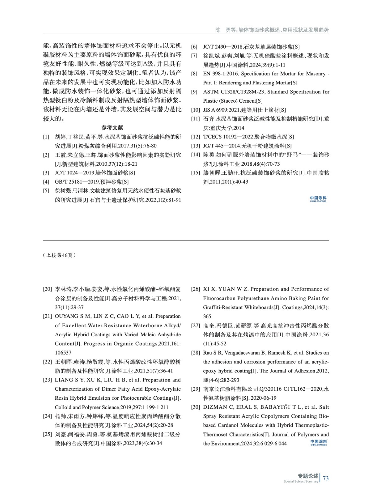 對墻體飾面砂漿的定義、執行標準、品類與市場上相近品類的產品對比進行了概述,然后對應用現狀、應用場景及存在問題進行了簡述,最后對發展趨勢進行了預測。